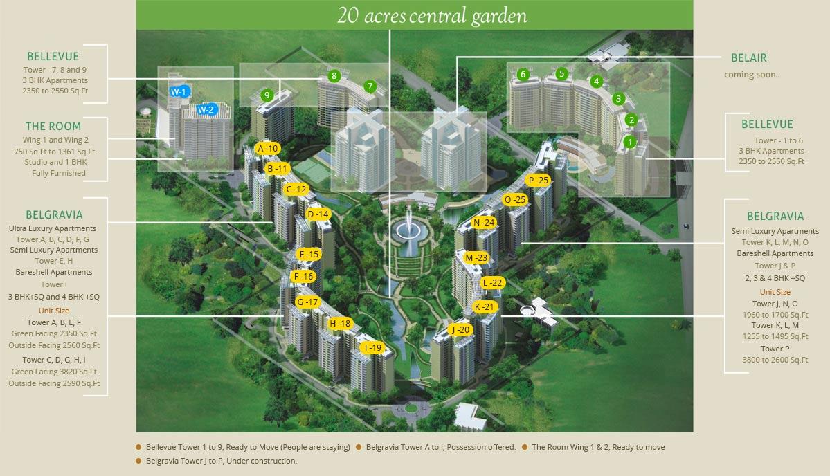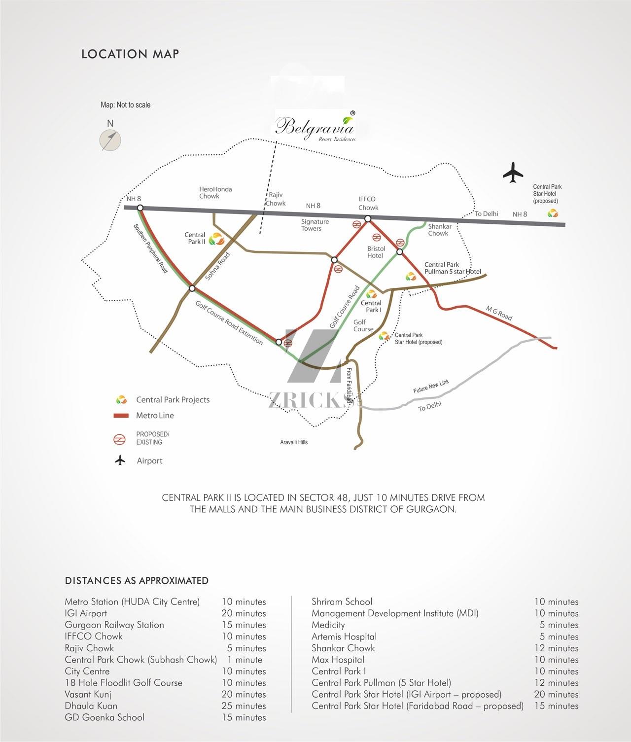 Central Park II Belgravia is a luxurious residential project located in Sector 48, Gurgaon along Sohna-Gurgaon Road. It has been planned and executed across a prime piece of land spanning 47.5 acres. This residential project offers regular apartments in 2 BHK, 3 BHK and 4 BHK as well as a selection of duplexes, townhouses and penthouse apartments. All these housing solutions range from 1255 sq. ft. to7200 sq. ft. in size. The entire residential complex comprises of 28 high rise residential towers that are surrounded by a plethora of facilities and amenities for all residents.