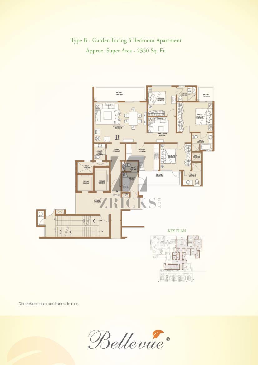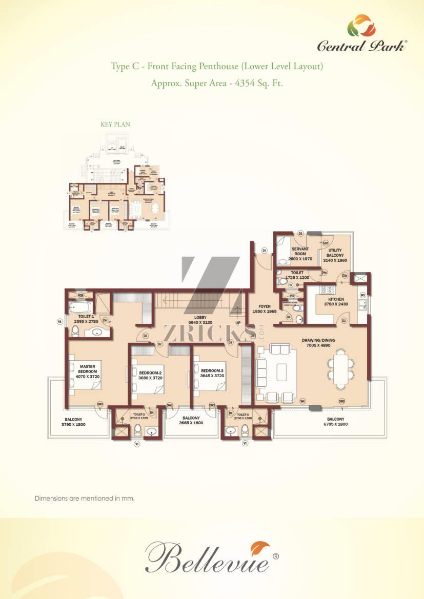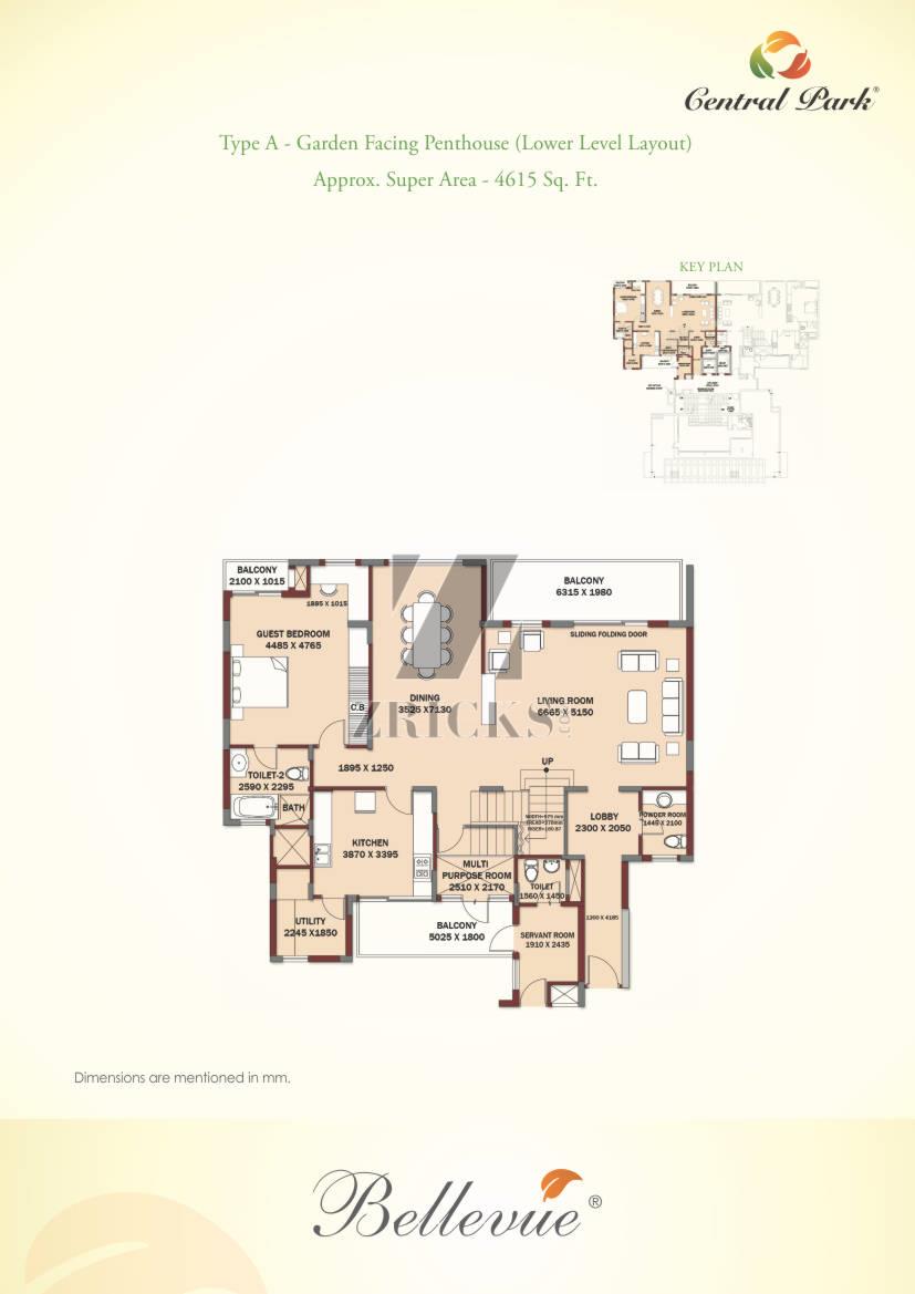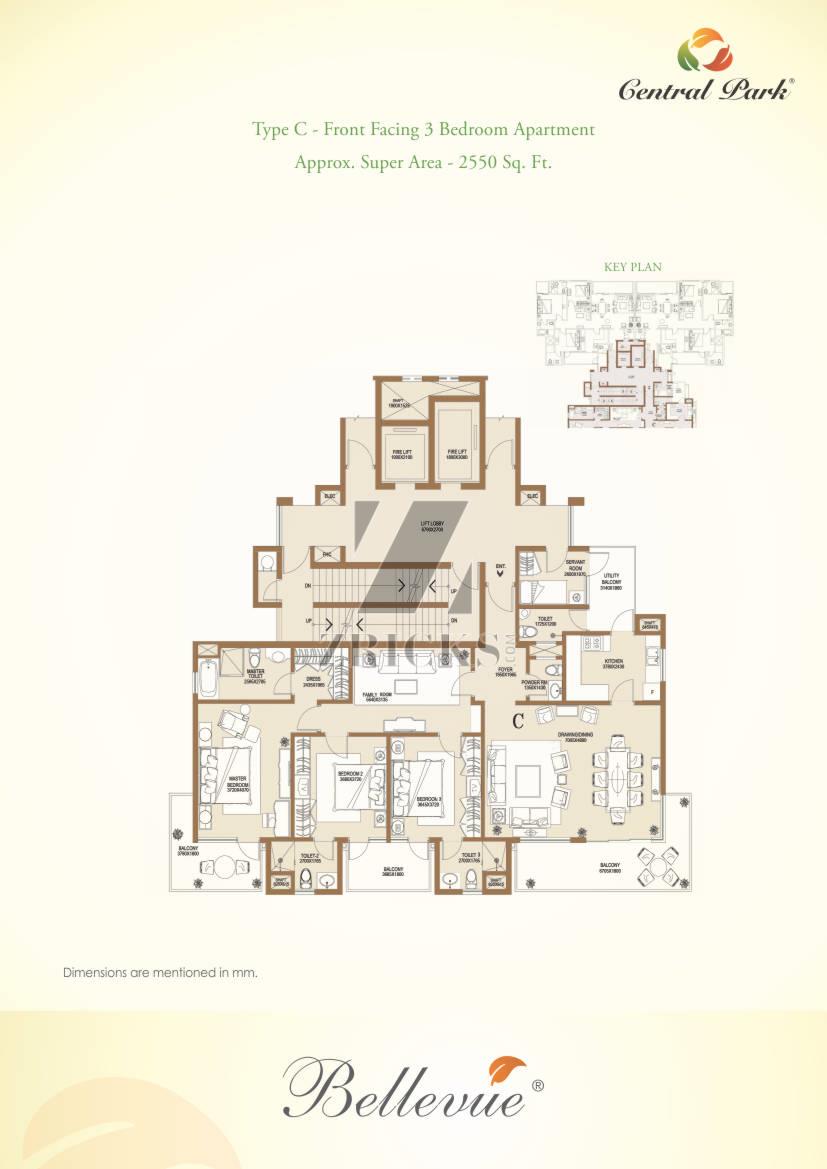 Central Park-II Bellevue is a premium residential project located at Sector 48 in Gurgaon along the Gurgaon-Sohna Road. This project offers a number of different styles in terms of housing solutions; ranging from 3 BHK apartments to six, highly-exclusive 4 BHK penthouses and eighteen townhouses or villas. All apartments are part of nine mid-rise residential towers and have a built-up area ranging between 2250 sq. ft. to 2350 sq. ft. The penthouses and villas range in size from 2650 sq. ft. to 4615 sq. ft. Along with excellent choices in housing, Central Park-II Bellevue also offers great amenities that have been integrated within the complex for the convenience of the residents.