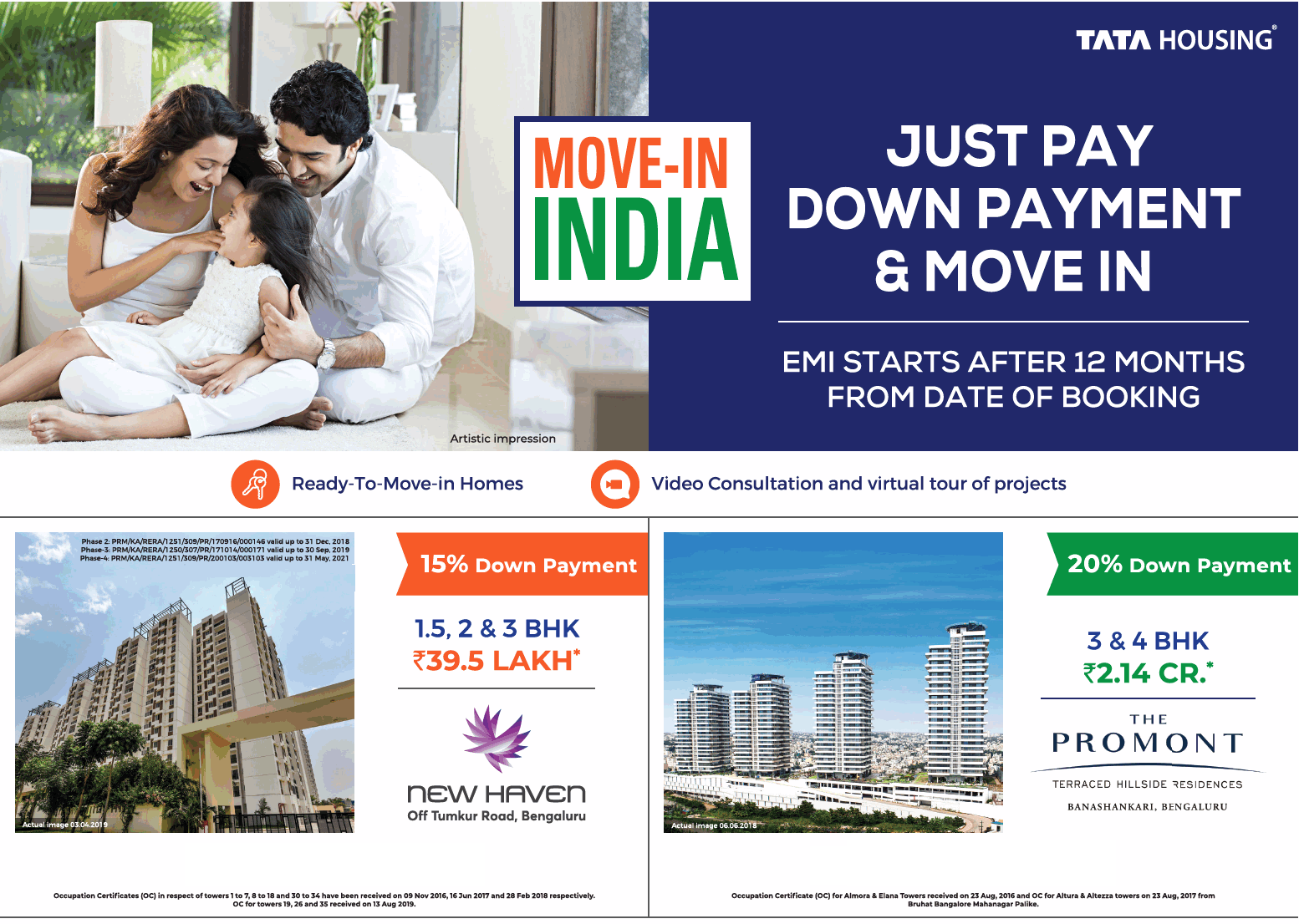 Just pay down payment and move in at Tata New Haven and Tata The Promont in Bangalore