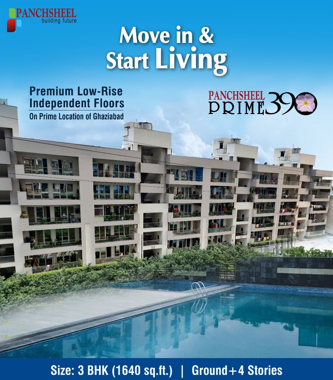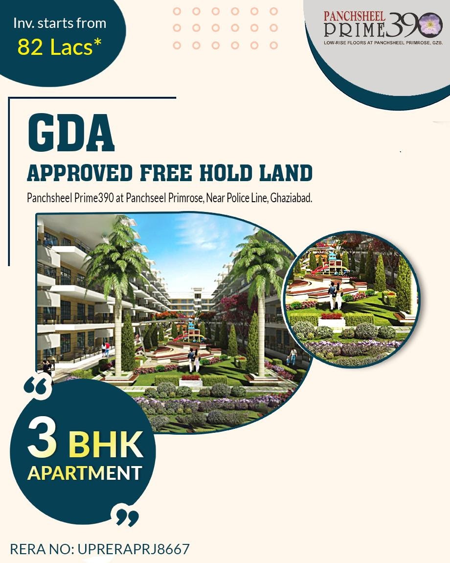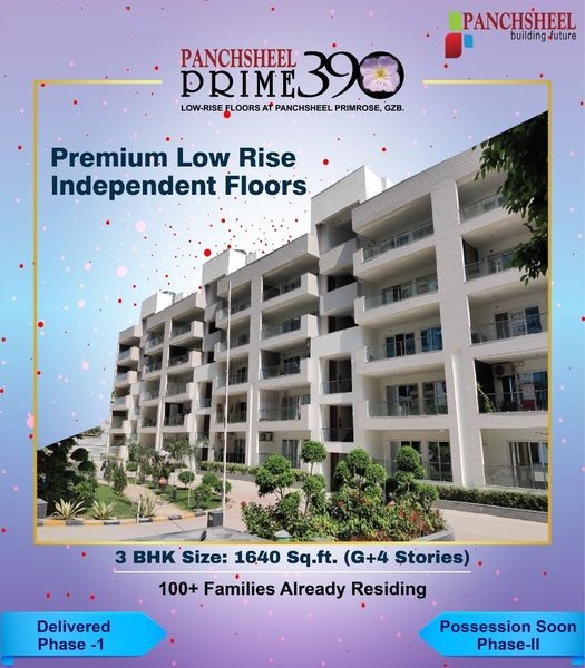 Panchsheel Prime 390 the people, who aspire to live in independent homes but for security & various others reasons live in flats, Panchsheel Group brings Low-rise (G+4 Storied) Spacious 3 BHK Apartments f