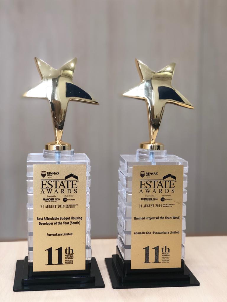 Puravankara Limited has been awarded the BEST AFFORDABLE BUDGET HOUSING DEVELOPER of the Year & ADORA DE GOA has been awarded as the BEST THEMED PROJECT of the Year at the prestigious ESTATE AWARDS 2019.