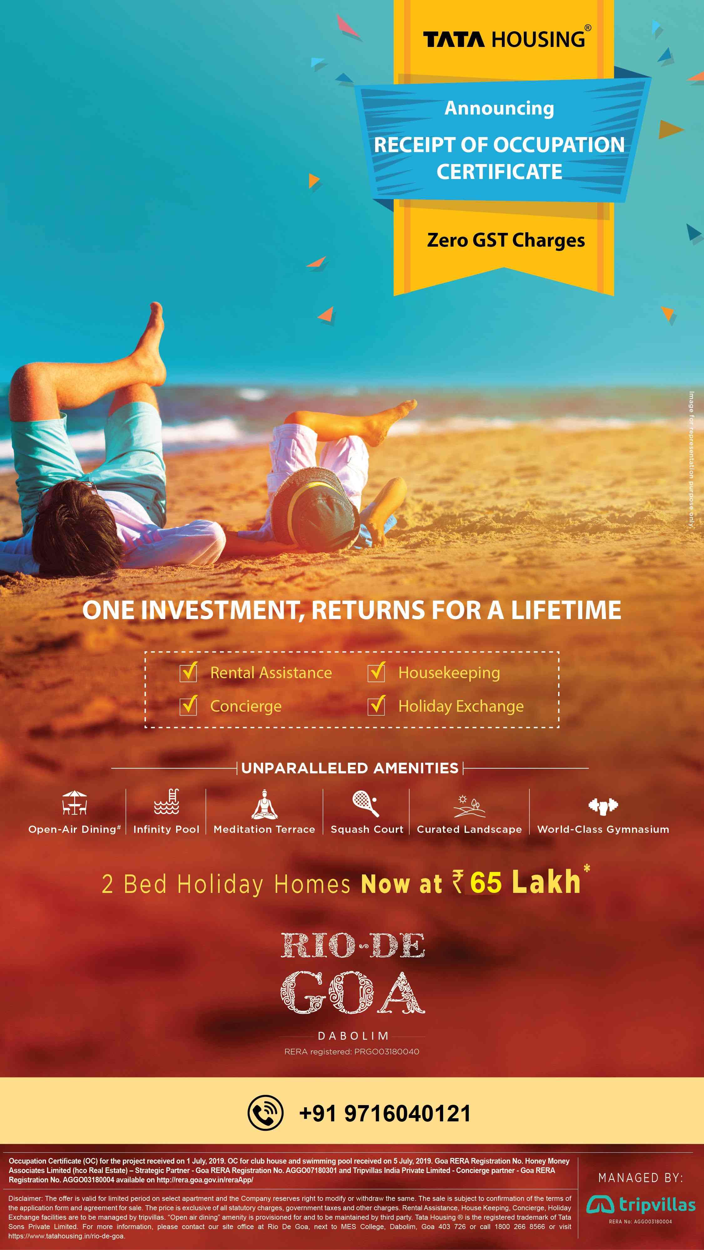 Tata Rio De Goa is a luxurious residency project that is currently in the pipelines at the offices of Tata Housing. Established in 1984, Tata Housing has grown quickly to be one of the most dominating real esta