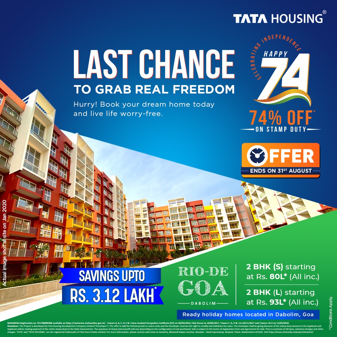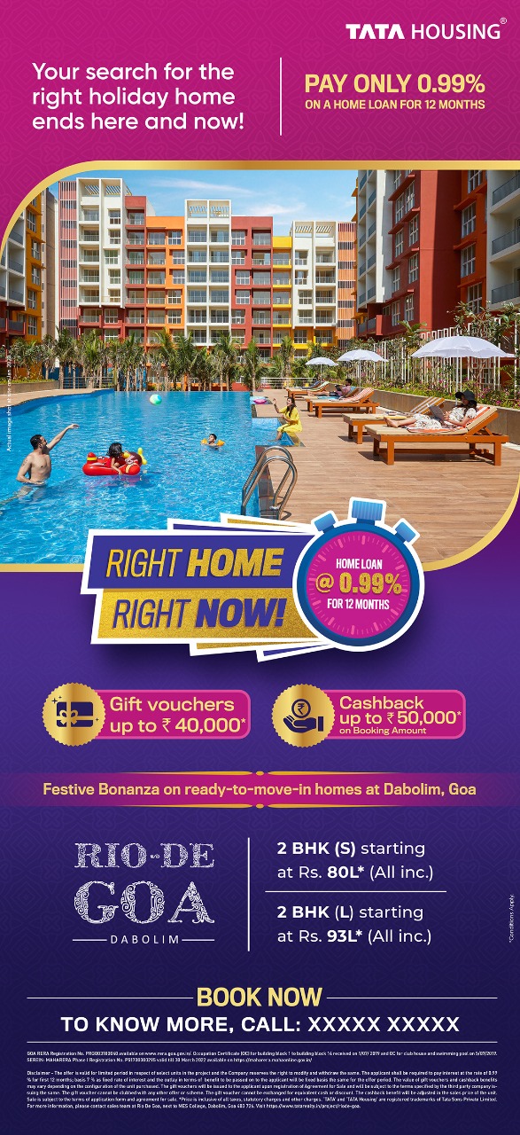 Rio-De-Goa, a residential project by Tata Housing is situated next to MES College, Dabolim, Goa - 403726.