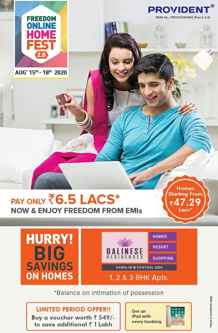 Own a 3 BHK Vacation Home by paying 34.9 Lacs now at Balinese Residences, Dabolim, Goa. Take off from