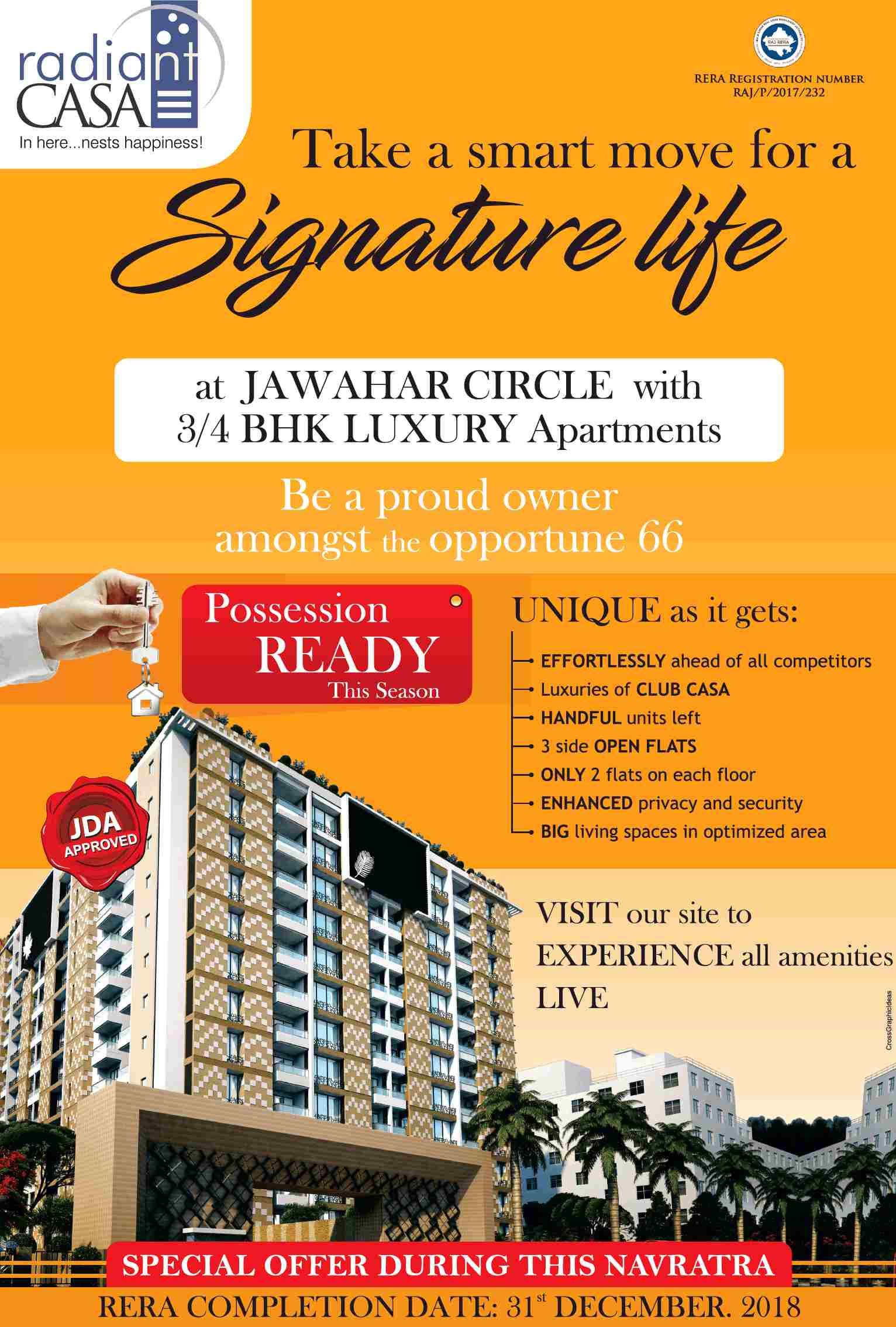 Pink Radiant Casa is a residential project developed by the Pink City Consortium. The project is located in Jawahar Circle, Jagatpura Road, Jaipur. The project offers ready possession 3 an