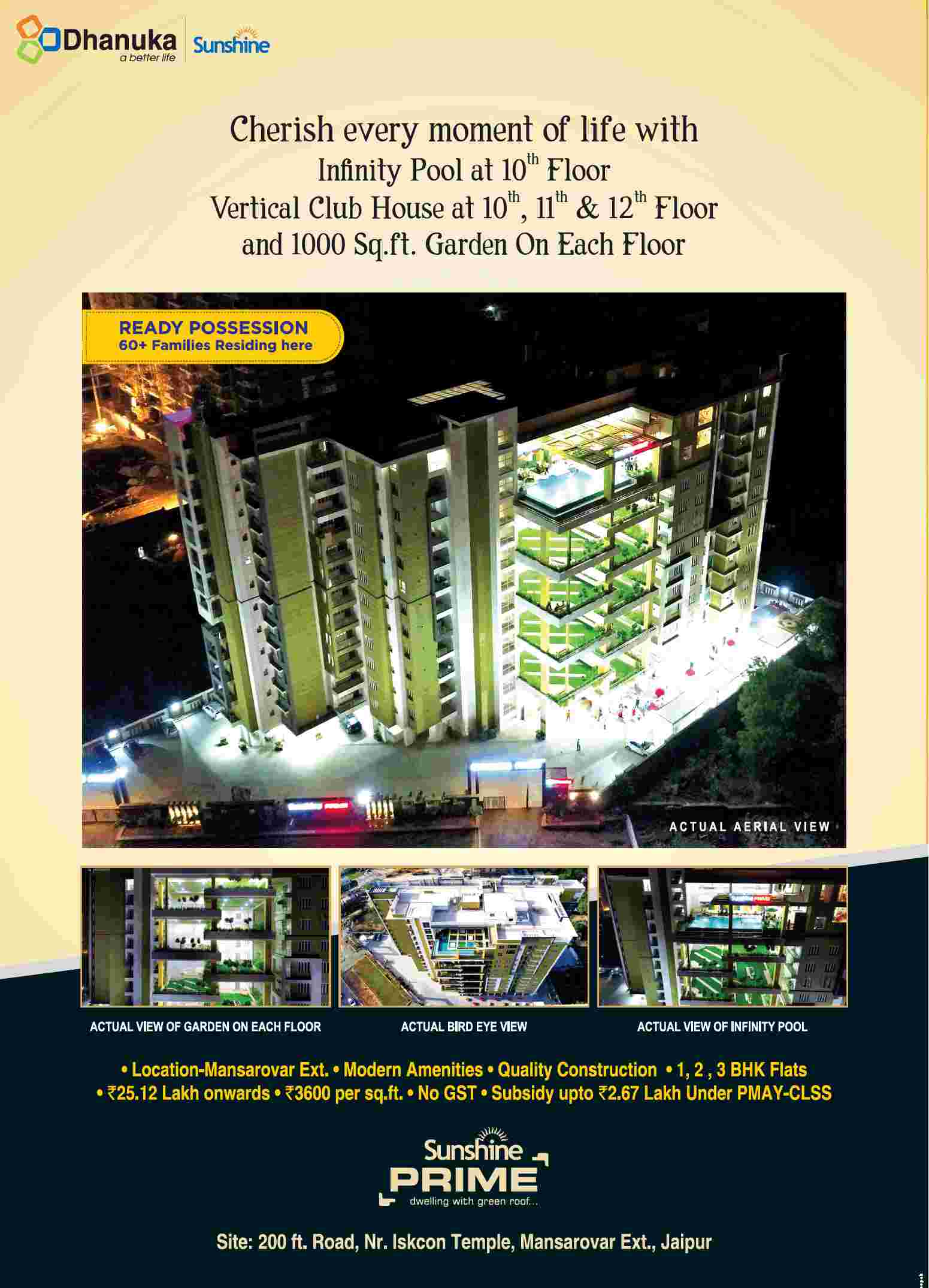 Dhanuka Sunshine Prime is a residential project developed by the Dhanuka Coloniser and Builders Pvt Ltd. The project is located in Mansarovar, Khatipura Road, Jaipur. Cherish every moment of life wi