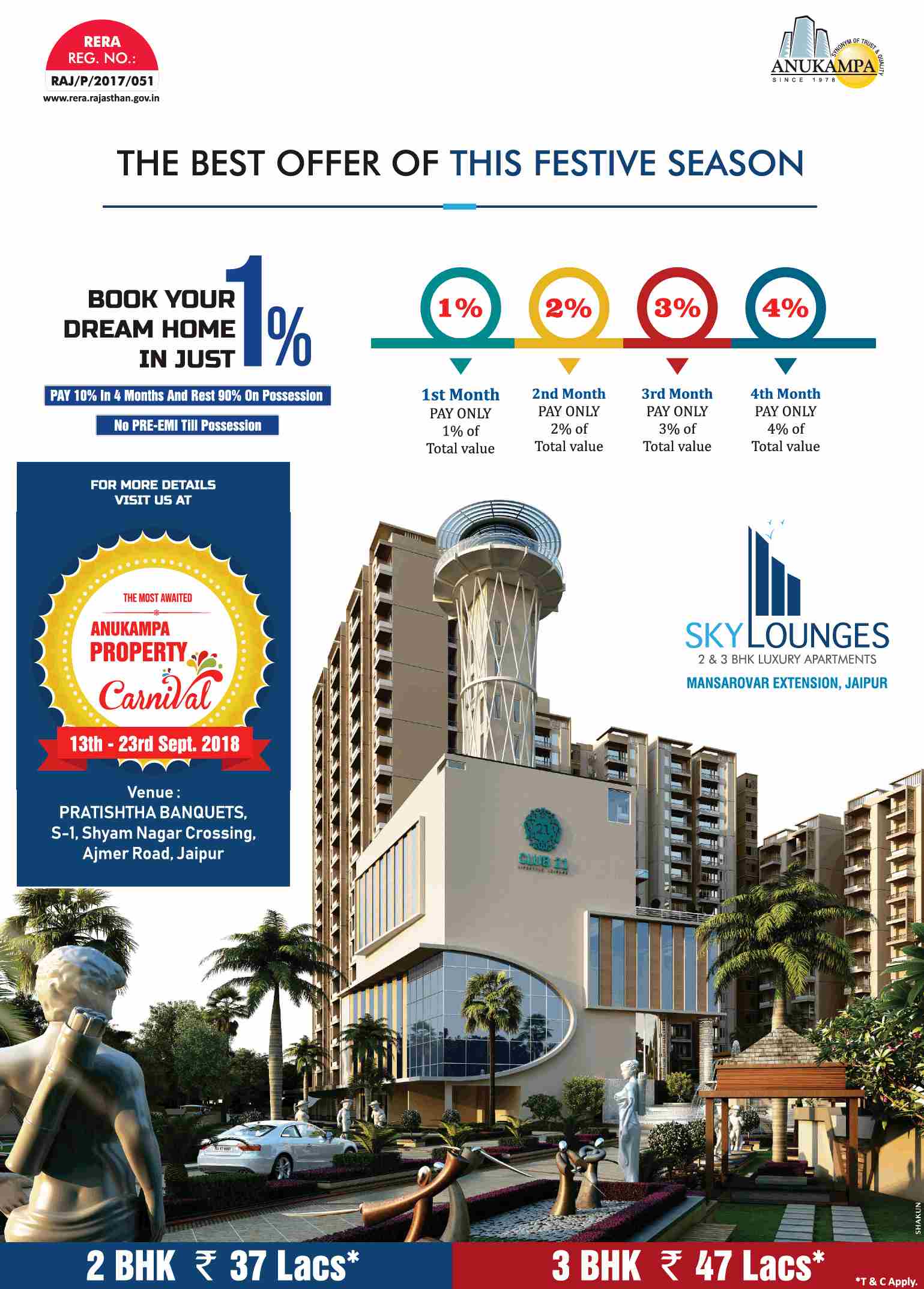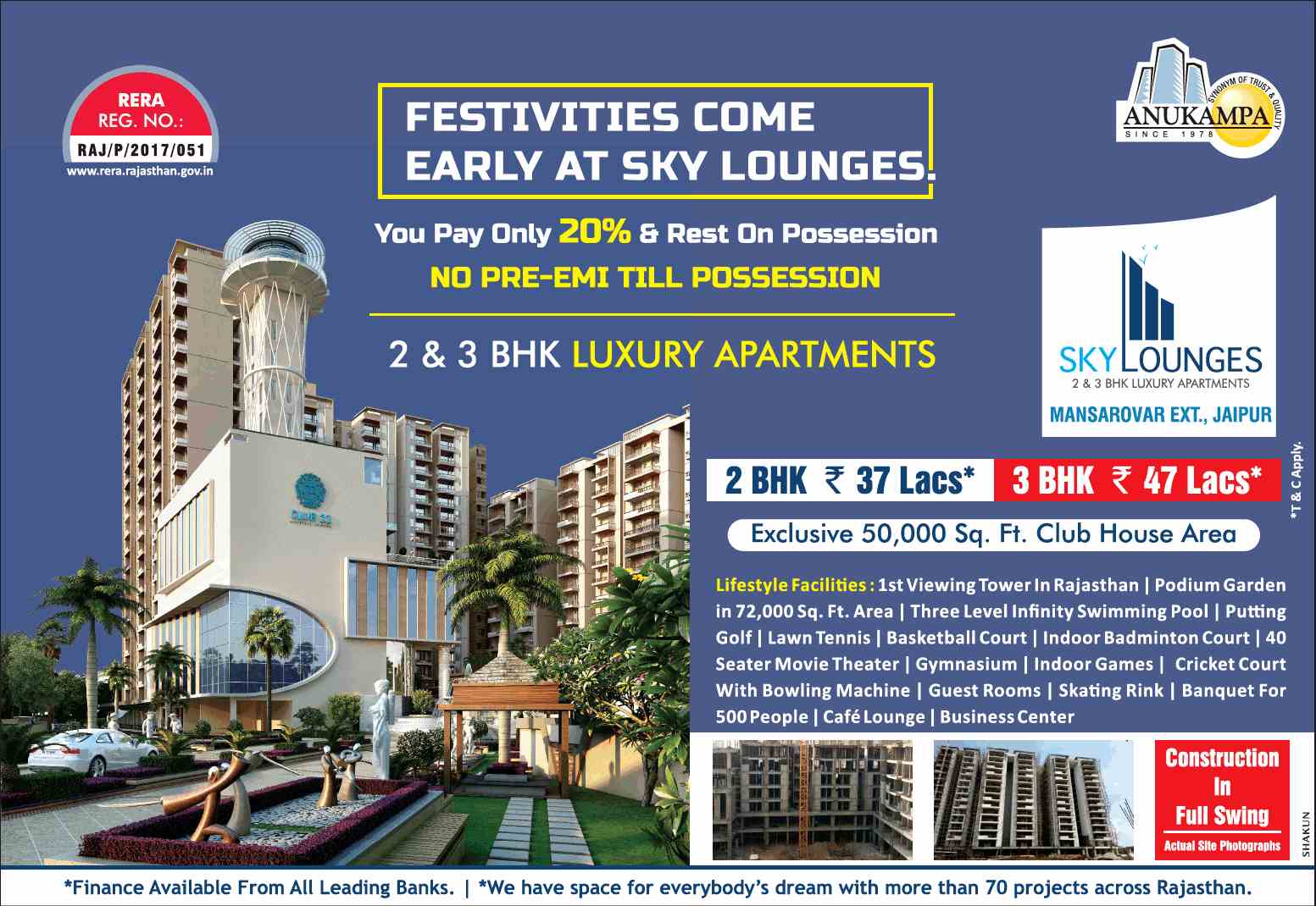 Anukampa Sky Lounges is a residential project developed by the Anukampa Group. The project is located in Sanganer, Muhana Mandi Road, Jaipur. The project offers 2 & 3 BHK luxury apartm