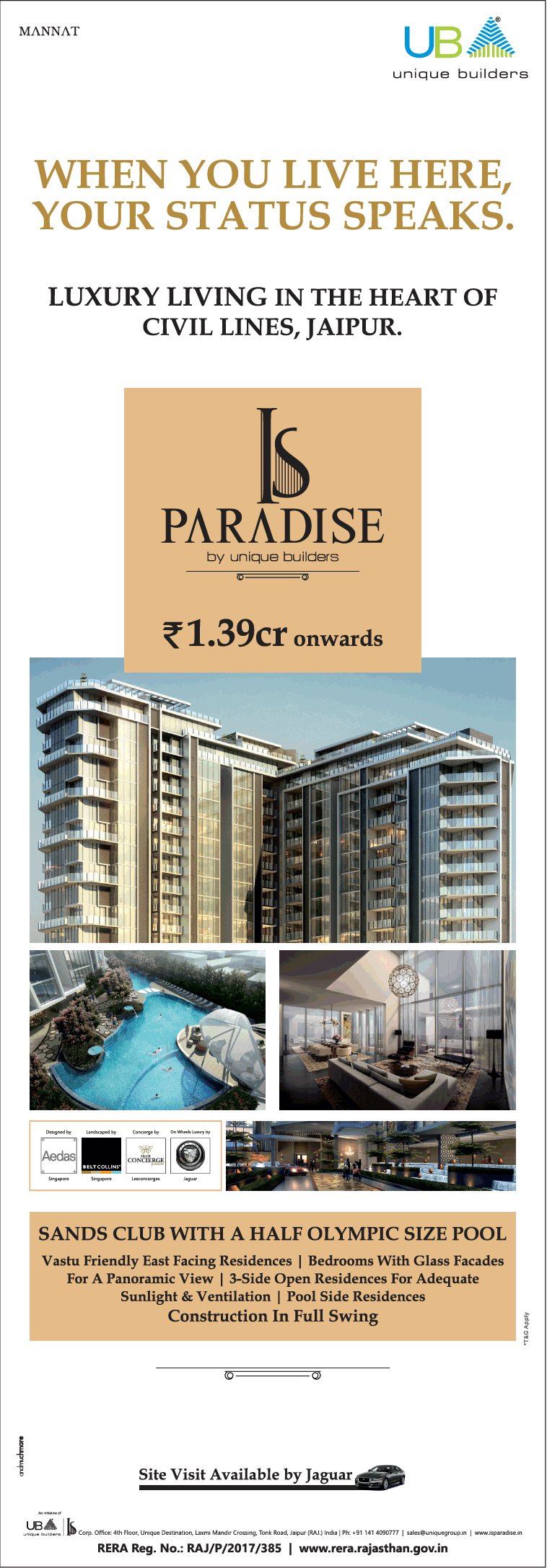Unique IS Paradise is located in Jaipur and comprises of thoughtfully built Residential Apartments. The project is located at a prime address in the prime location of Civil Lines. Unique IS paradise is designed