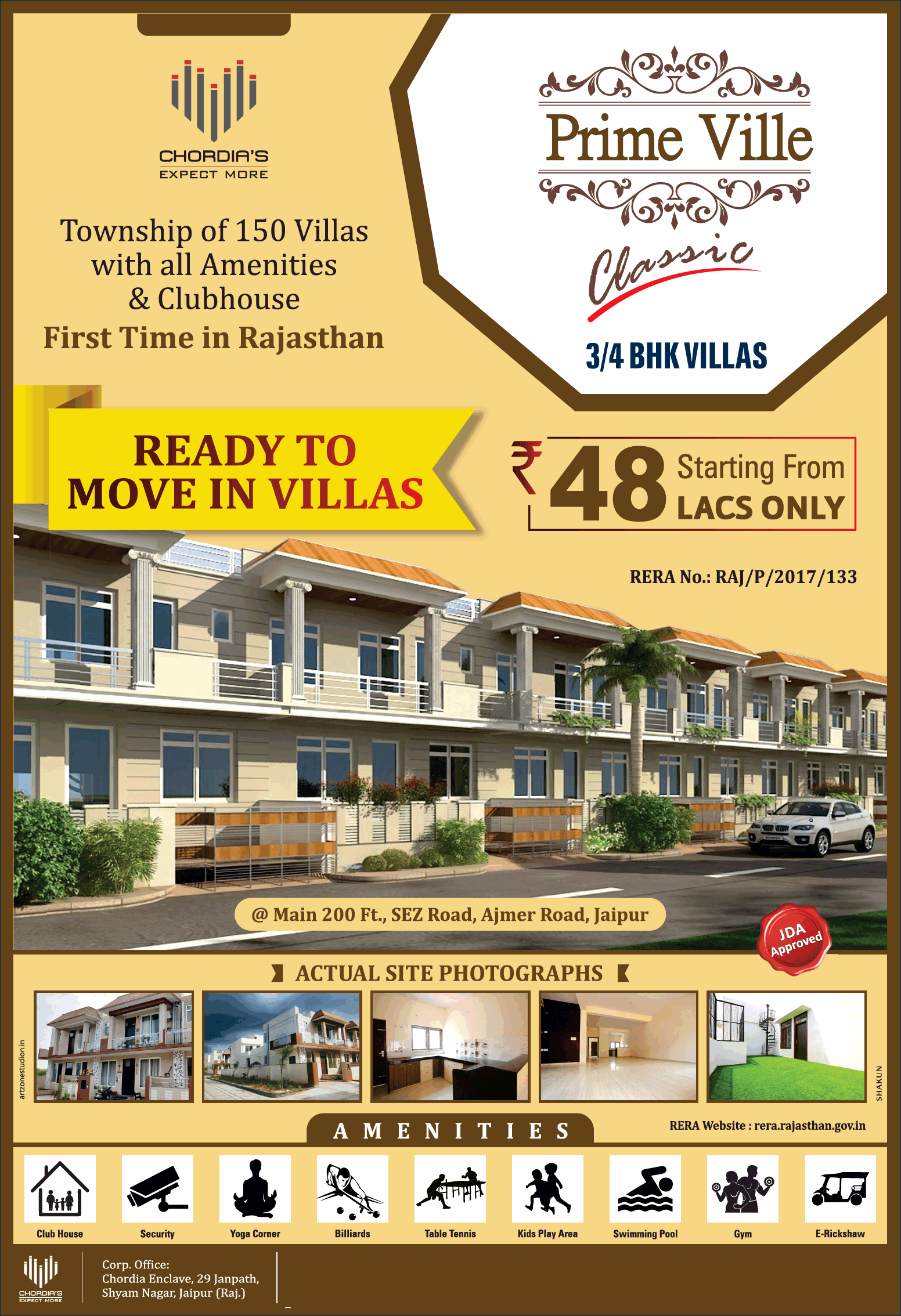 Wouldn't it be a perfect to come home a place that captures your adventurous spirit, cool, sophistication and joyous mind. A project of 150 Premium independent Villas.The Prime Ville Villas available in 3