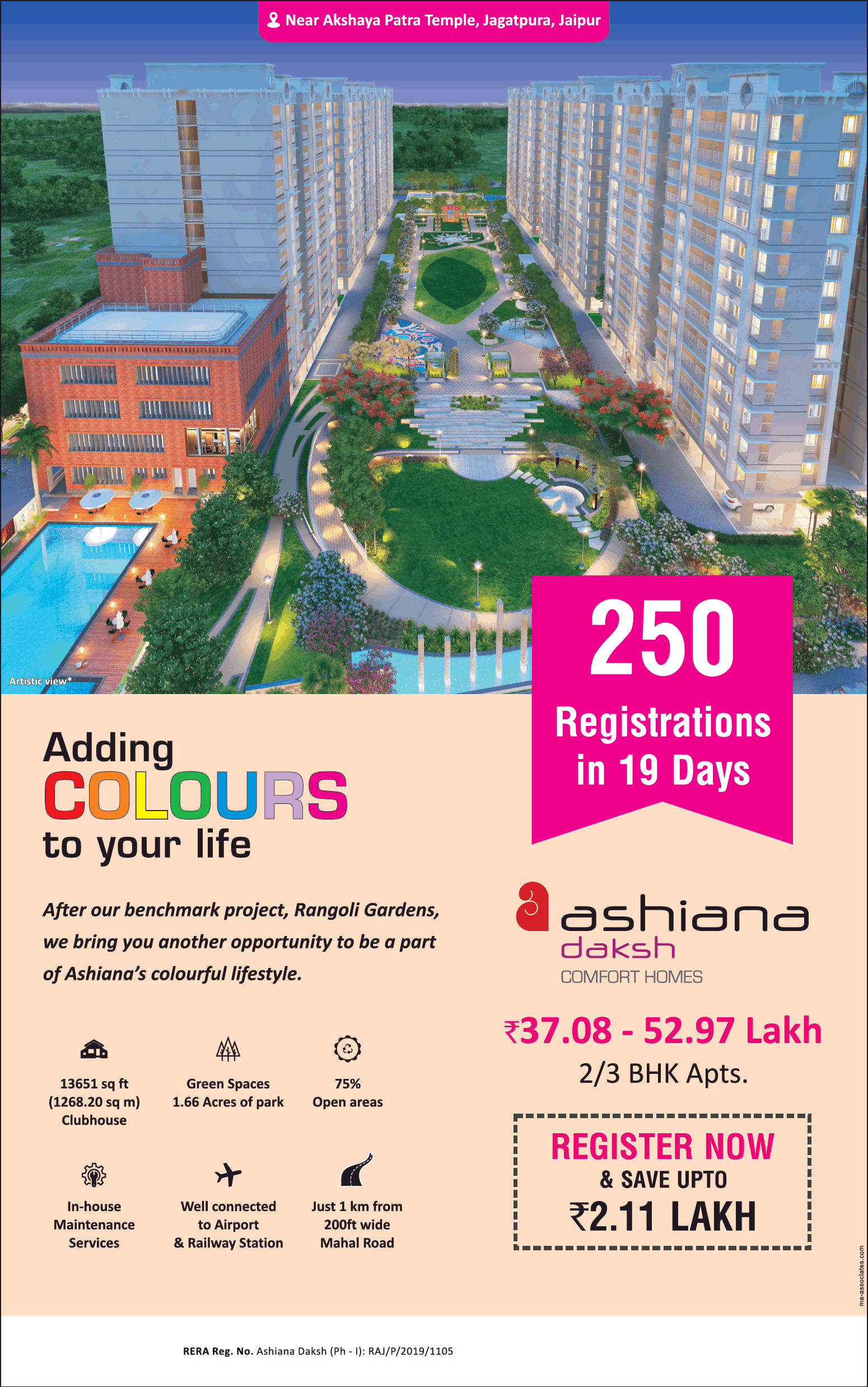 After our benchmark project, Rangoli Gardens, we bring you another opportunity to be a part of Ashiana's colorful lifestyle. With Jaipur’s property prices touching new heights, people are looking for more 2 & 3 BHK opt