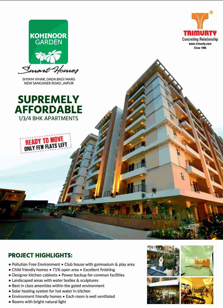 Trimurty Kohinoor Garden is a residential project developed by the Trimurty Colonzers & Builders Pvt Ltd. The project is located in Sanganer, New Sanganer Road, Jaipur. The project offers suprem