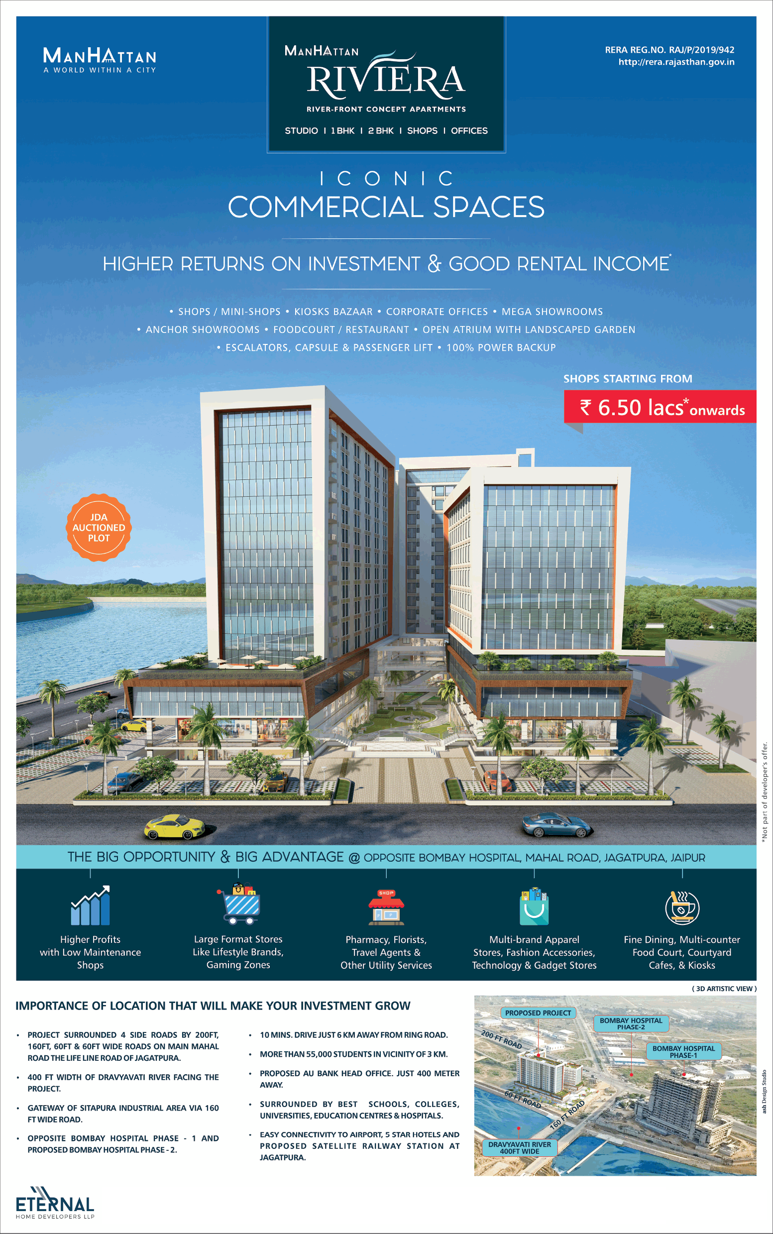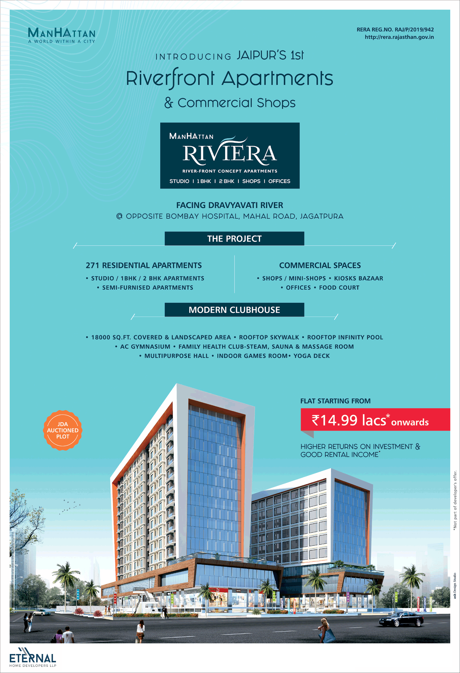 The Manhattan Rivera is a residential cum commercial development in Ramchandra, Jaipur. They provide 1bhk, 2bhk apartments, commercial shops, and offices.