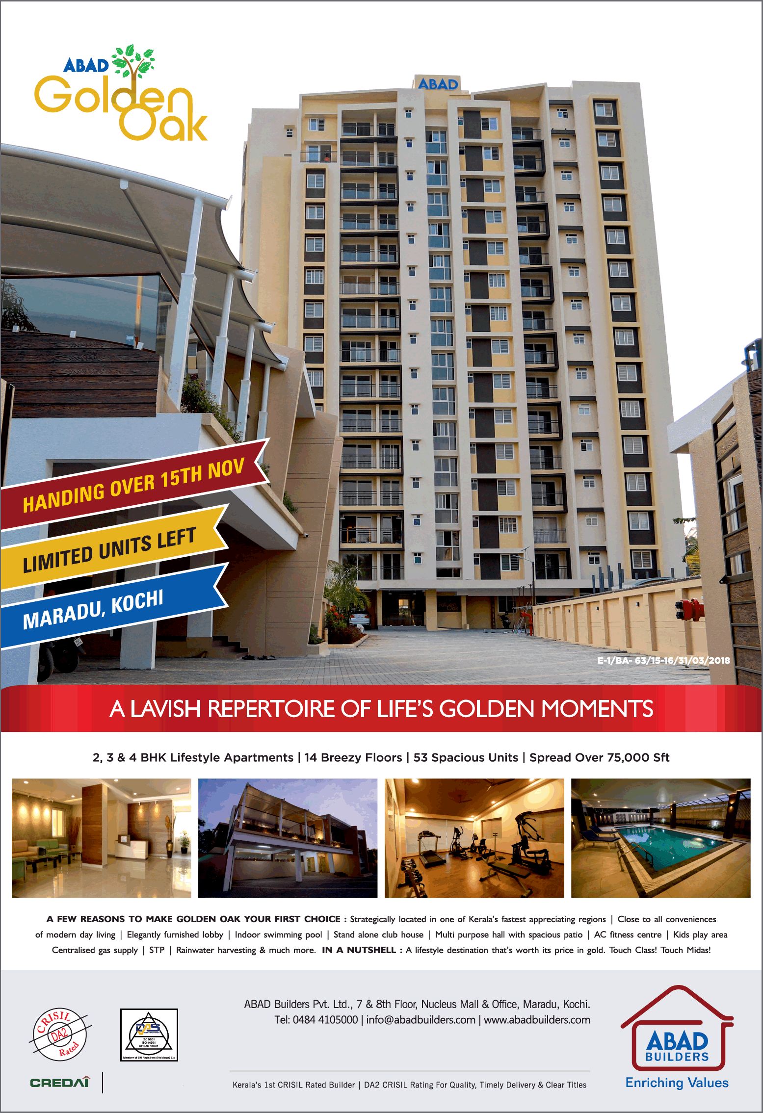 An exclusive apartment project from ABAD Builders offering 20 swanky and spacious apartments with 2 units on each floor caters to a privileged and enviable few that desire the best quality, ambiance, and luxu