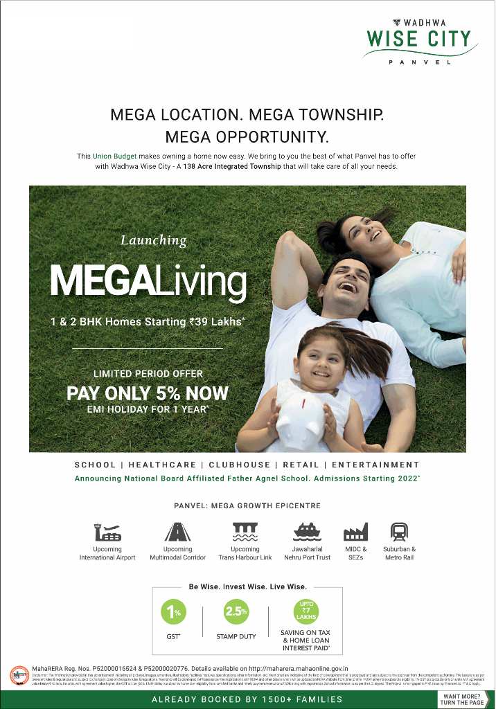 Wadhwa Wise City Limited Edition 1 and 2 Bed Residences At An Inaugural Price Of Rs 39 Lakhs. Say Hello To Independent Living - Stylish, Luxurious, Well-Designed Bungalows And Townhouses. Located In
