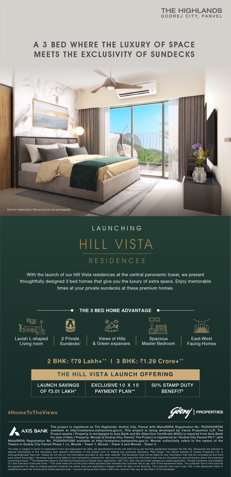 Pre-launching Hill Vista Residences With the launch of our Hill Vista residences at the central panoramic tower, we present thoughtfully designed 3 bedroom homes that give you the luxury of extra space. Enjoy memorable times at your priv
