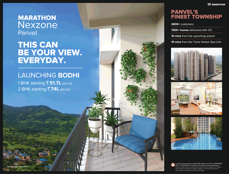 Marathon Nexzone enjoys perhaps the most futuristic location in our entire country. The Trans-harbor sea link will make Nexzone under 45 minutes away from South Mumbai. With the upcoming airport just a few mi