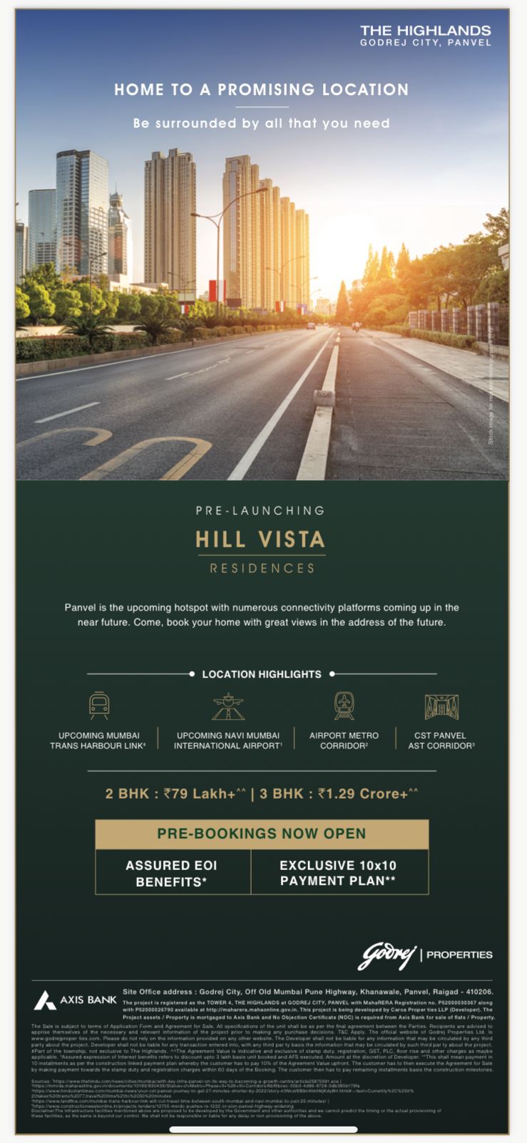 Pre-launching Hill Vista Residences, Panvel is the Upcoming Hotspot with Numerous Connectivity Platforms Coming up in the Near Future. Come, Book Your Home with Great Views in the Address of the Future.