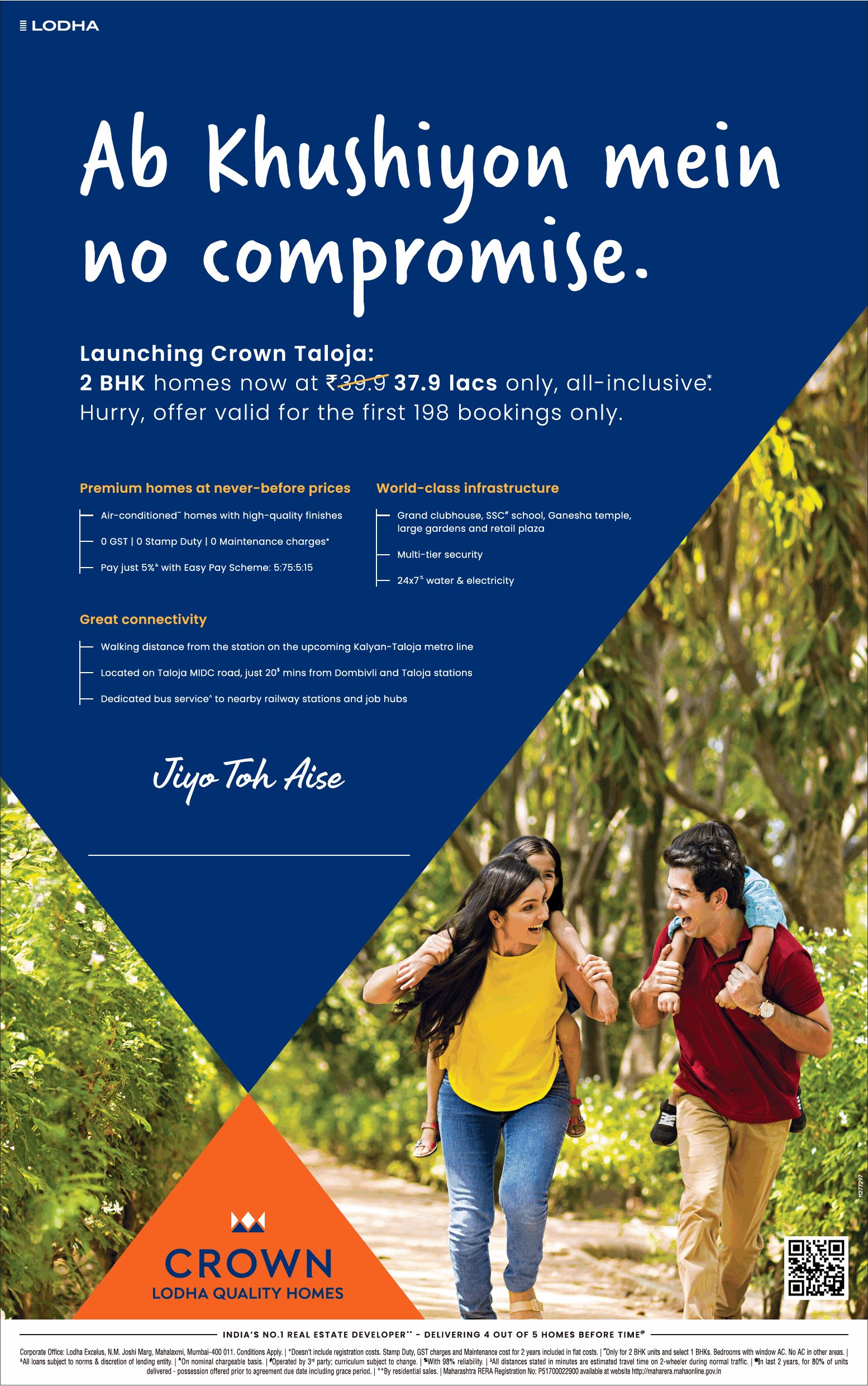 Lodha, Amongst India's largest residential real estate developers**, presents Crown Taloja – a new brand of truly affordable homes that will ensure that every hardworking family in the Mumbai Metrop