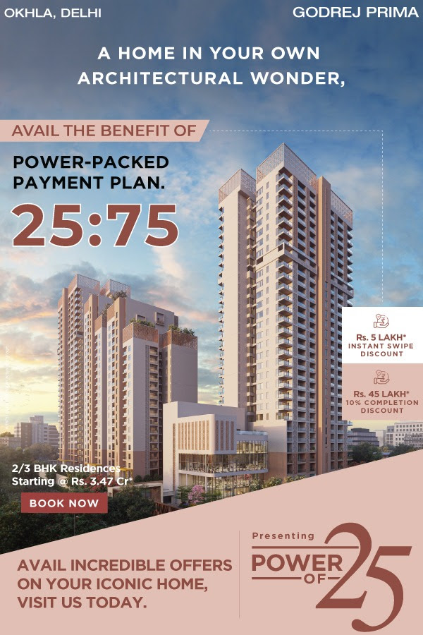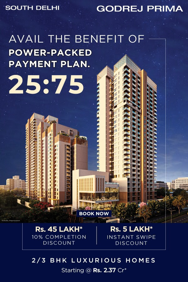 Avail the benefit of power-packed payment plan 25:75 at Godrej Prima, South Delhi