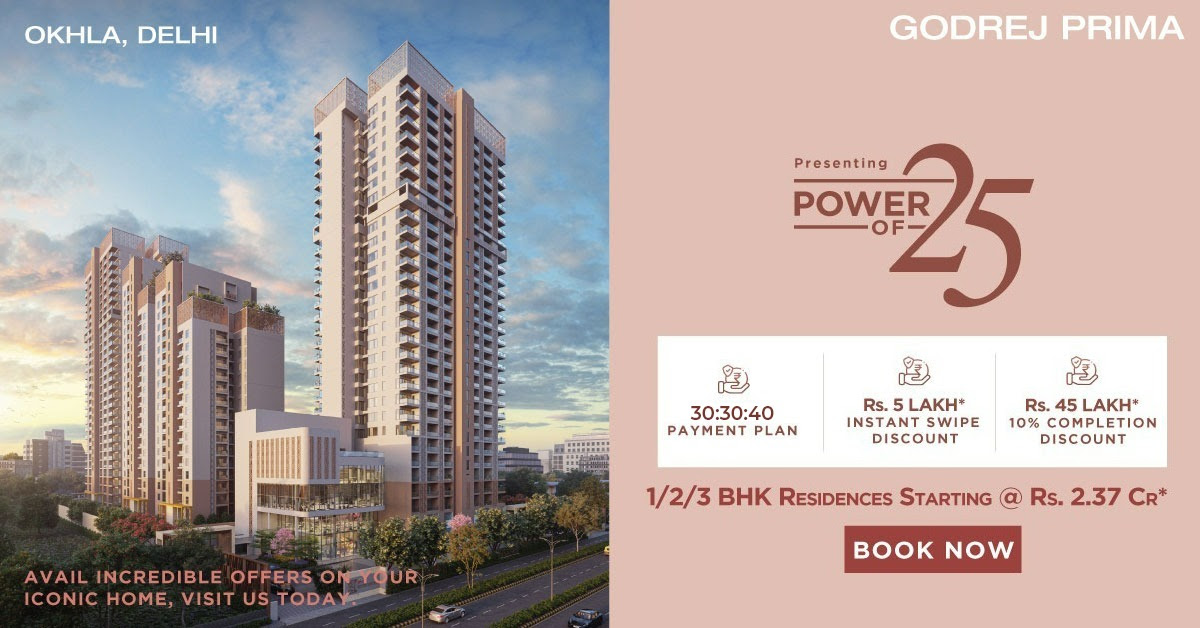 Book 1, 2 and 3 BHK Residences Rs 2.37 Cr onwards at Godrej Prima, South Delhi