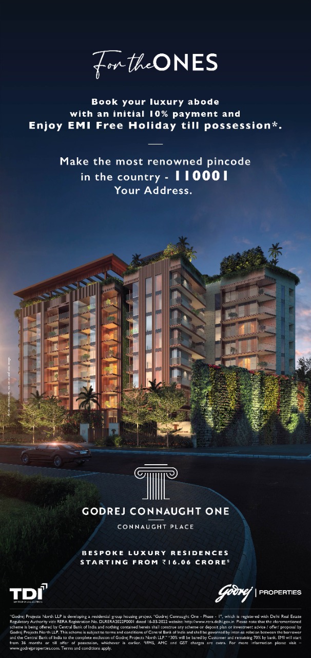 Book your luxury abode with an initial 10% payment and Enjoy EMI Free Holiday till possession at Godrej Connaught One, New Delhi