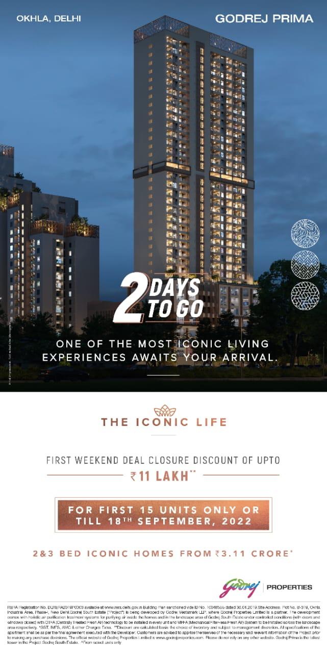 First weekend deal closure discount of upto Rs 11 Lac at Godrej Prima, Delhi