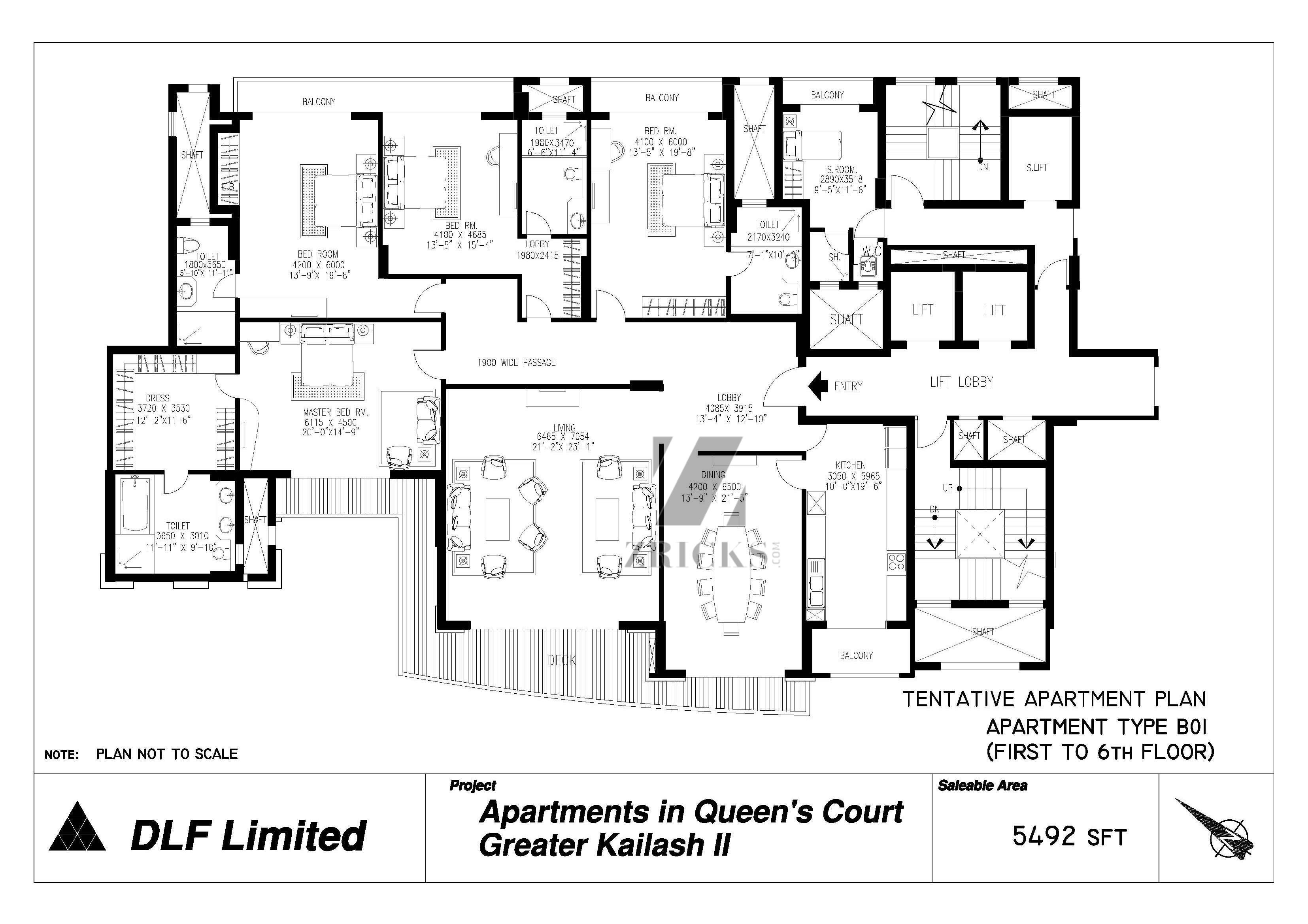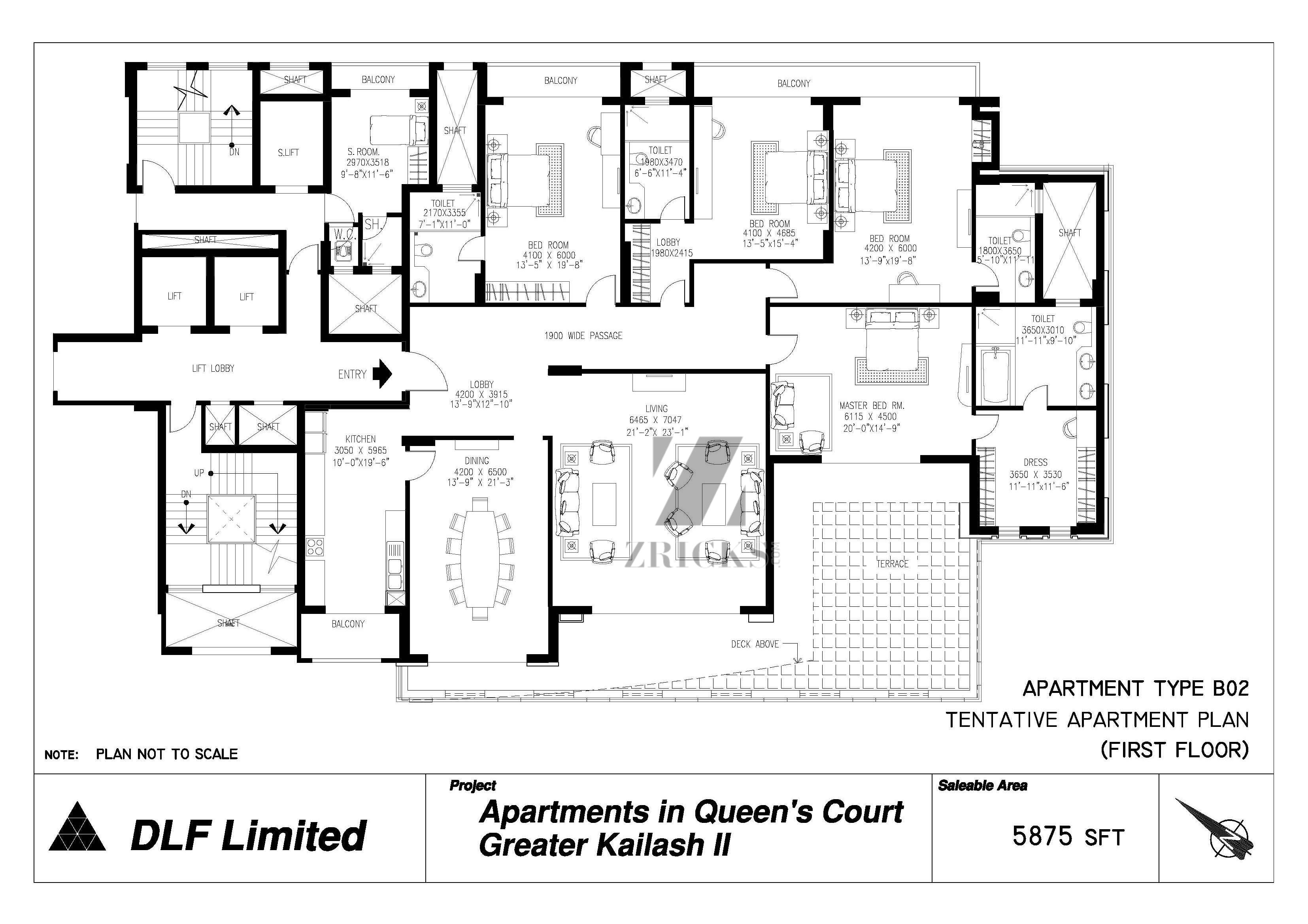 DLF Queen’s Court, situated in E-block in the vicinity of Greater Kailash II (New Delhi), is a residential project fit for kings and queens. Much like rare collection of artwork, DLF Queen’s Court’s architecture, design and intention is as rare. Only a true connoisseur of luxury and exclusivity can gauge the opulence of 4BHK apartments and 5BHK Penthouses in sizes ranging from 5487sq. ft. to 9068 sq. ft. The immense vastness is spread out over 1.15 acres of land. Elegance, the high-life and luxury-living has been given a total facelift with DLF’s Queen’s Court project.