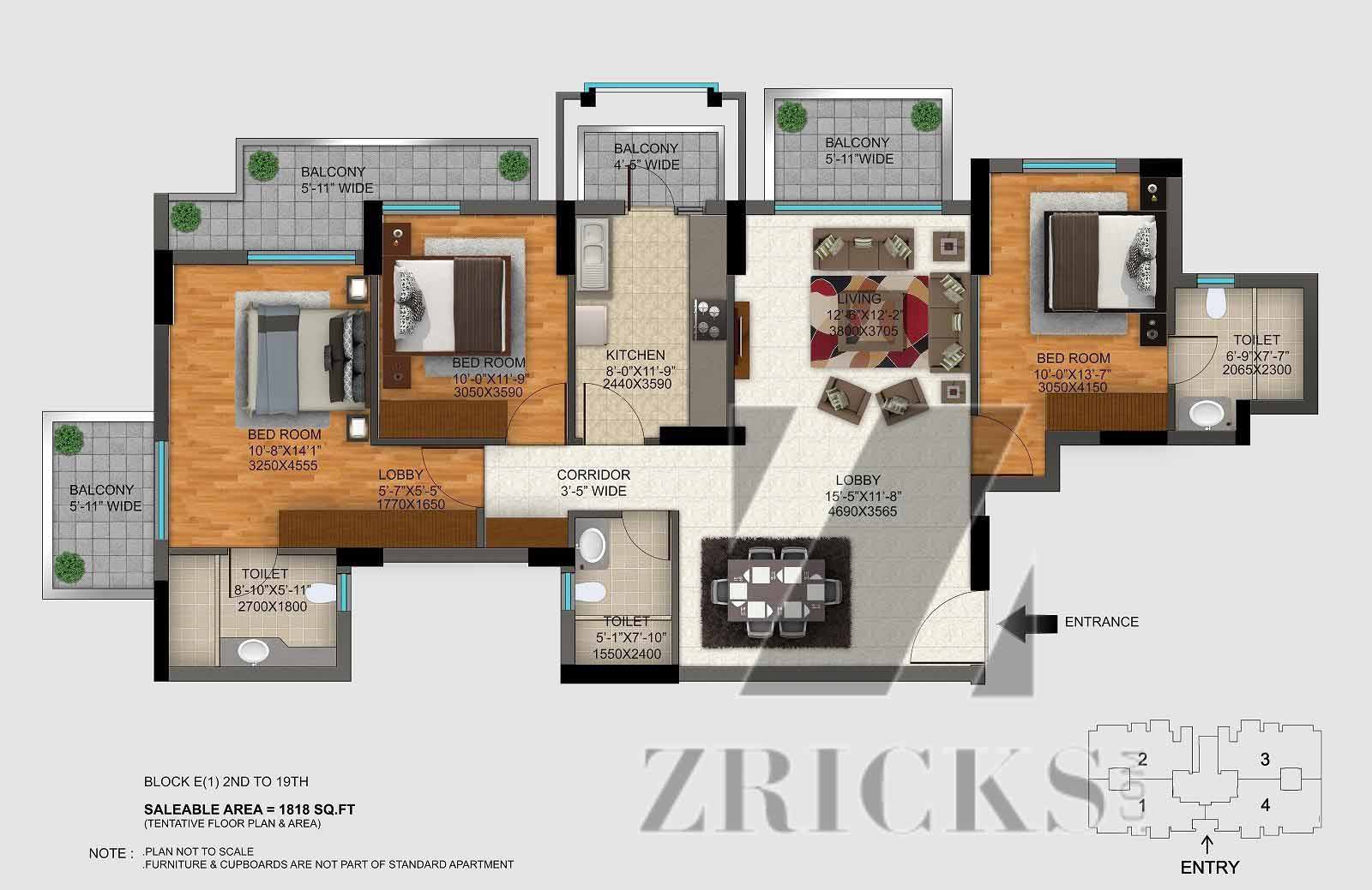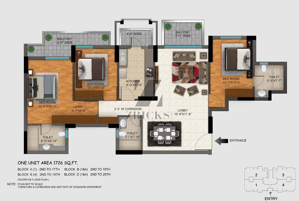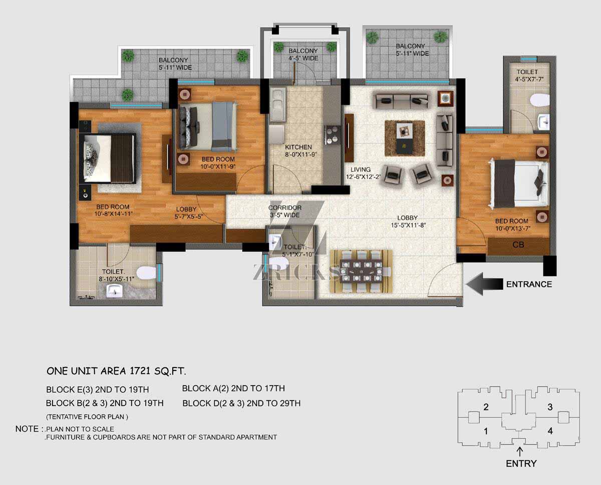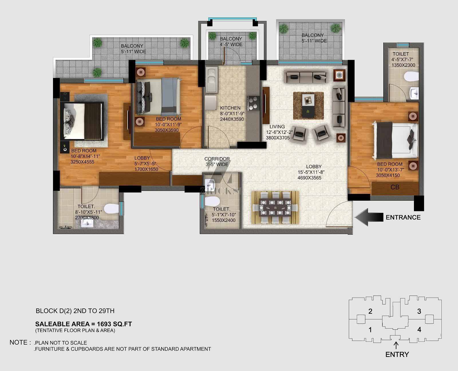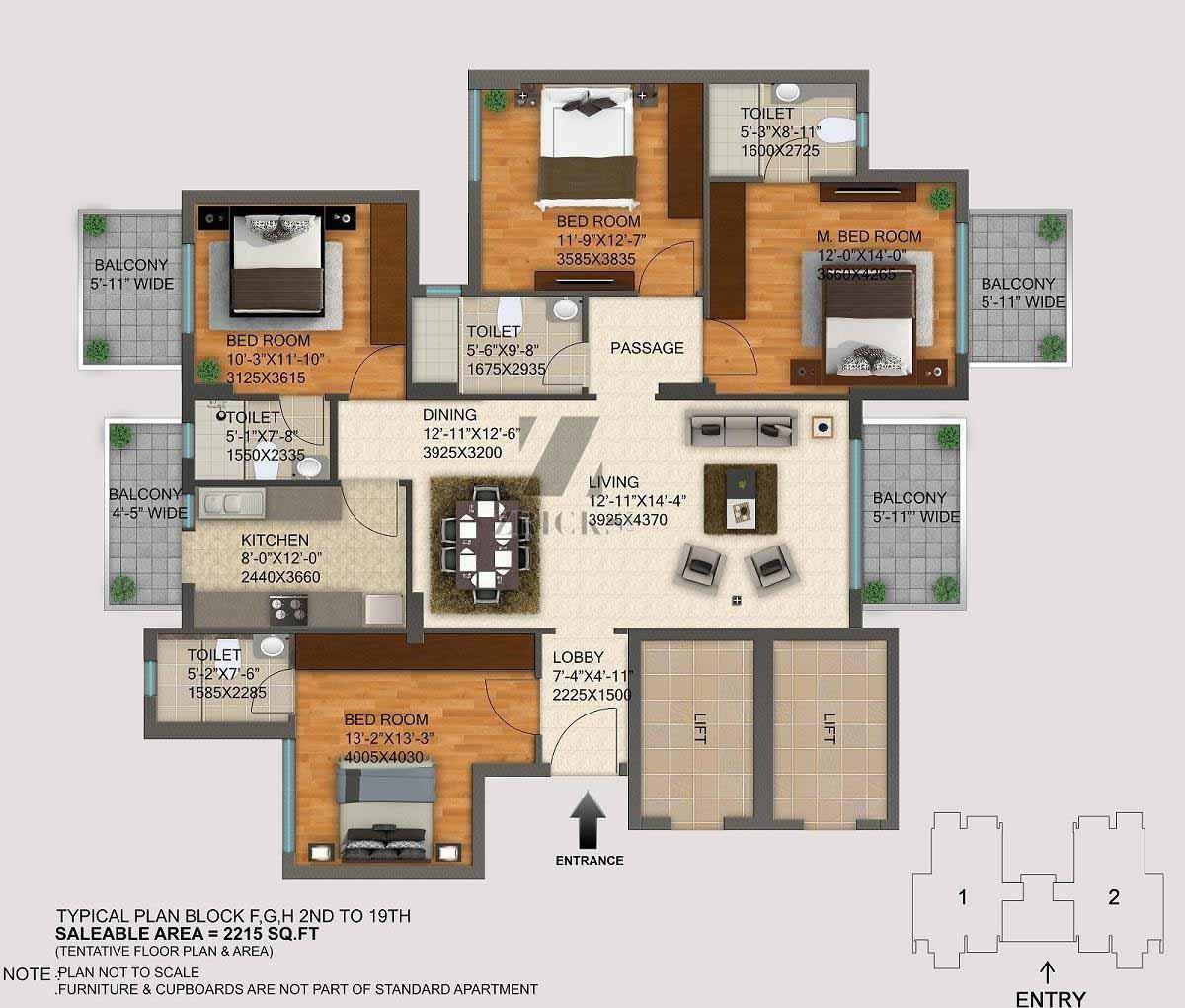 • Variety of choices within the existing 3BHK and 4BHK in terms of apartment type