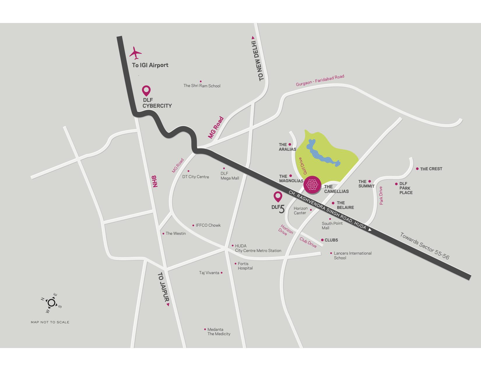 DLF Camellias is an residential, lifestyle condominium at Gurgaon’s golf course road. The camellias offer unparalleled and unmatched quality of standard of living with 4 BHK, 5 BHK and 6 BHK standalone residential condos and penthouses built lavishly over 7350 sq. ft. to 16000 sq. ft. Unlike normal apartments, there are no shared walls at the Camellias. Each apartment is treated as an independent residential unit which means more privacy and superior architectural design. The elegance of DLF The Camellias is further enhanced by the open green spaces. A grand façade and intelligent lighting come together to make it an upcoming grand landmark in one of the most prime locations of Gurgaon.