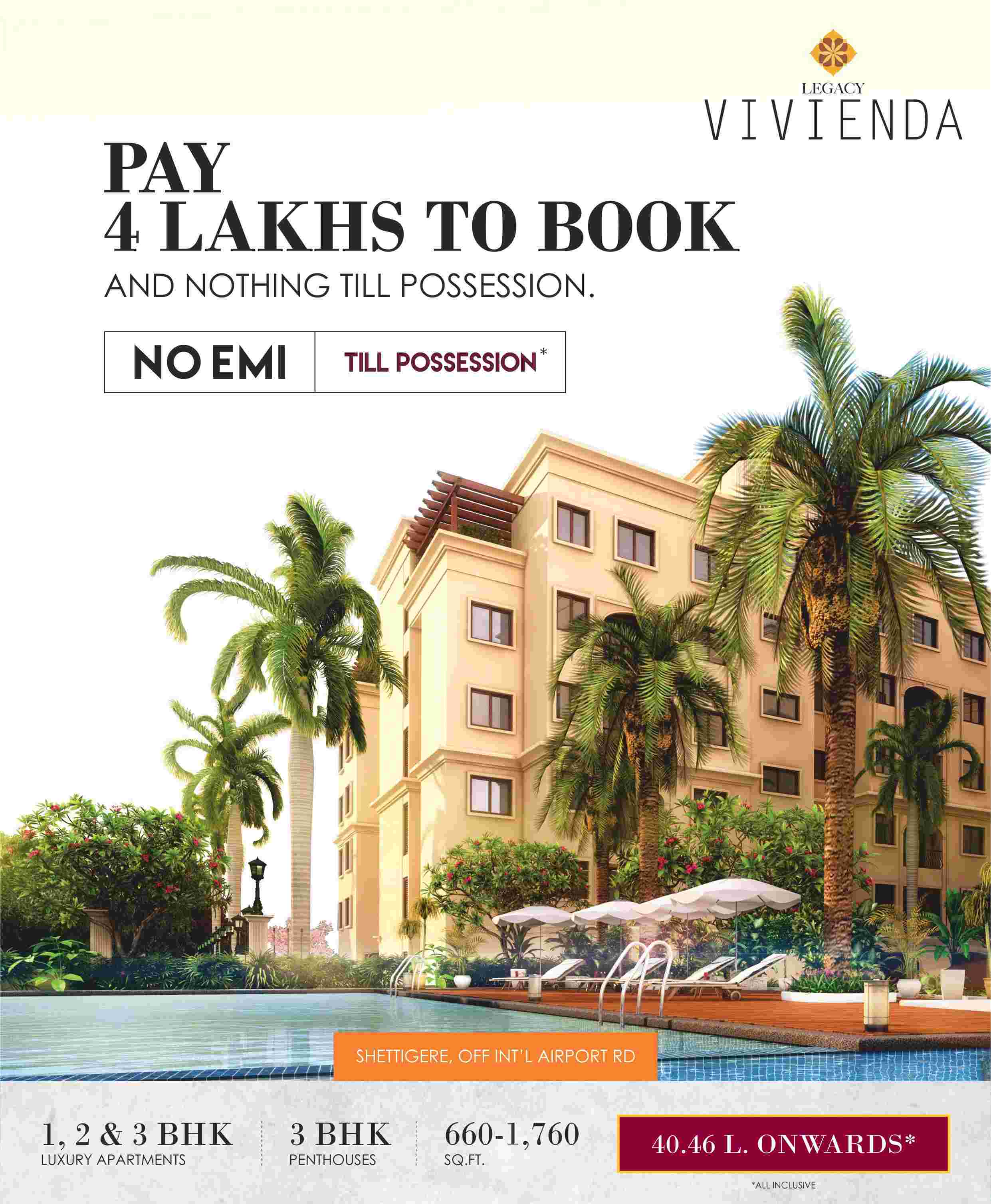 Pay 4 lakhs to book and nothing Till possession in Legacy Vivienda