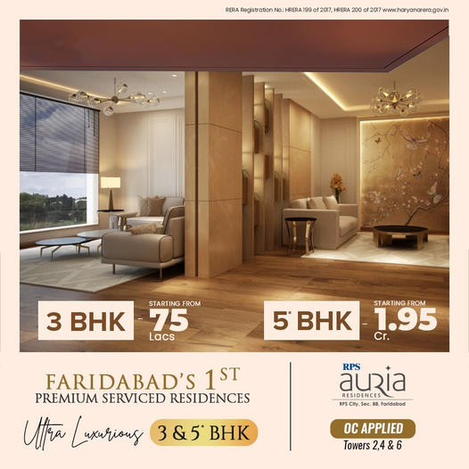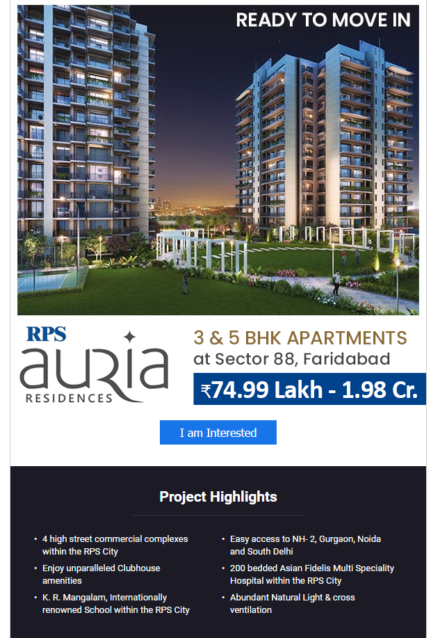 RPS Auria Residences situated in Sector-88, Faridabad, is a prime residential complex. This modern day residency has been constructed as per international standard architectural norms. RPS City Auria Residenc