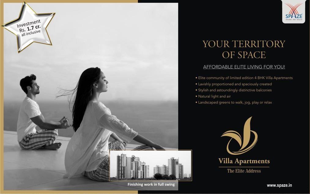 Spaze Villa Apartment is a luxurious residential project developed by Spaze Towers Pvt. Ltd. The project is located at Sector 93, IMT Manesar, Gurgaon. The project offers limited edition 4 BHK villa apartment
