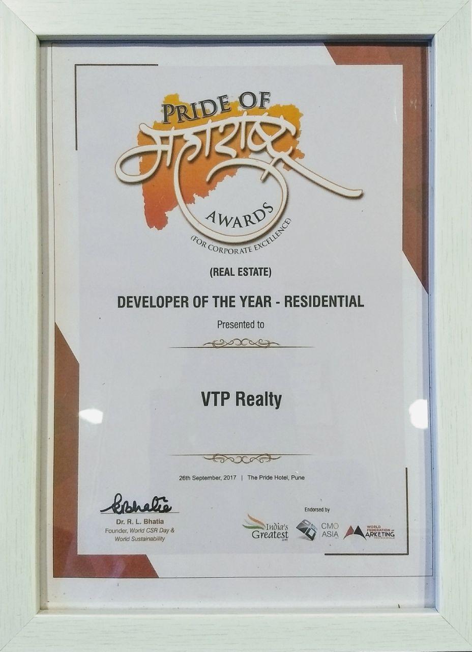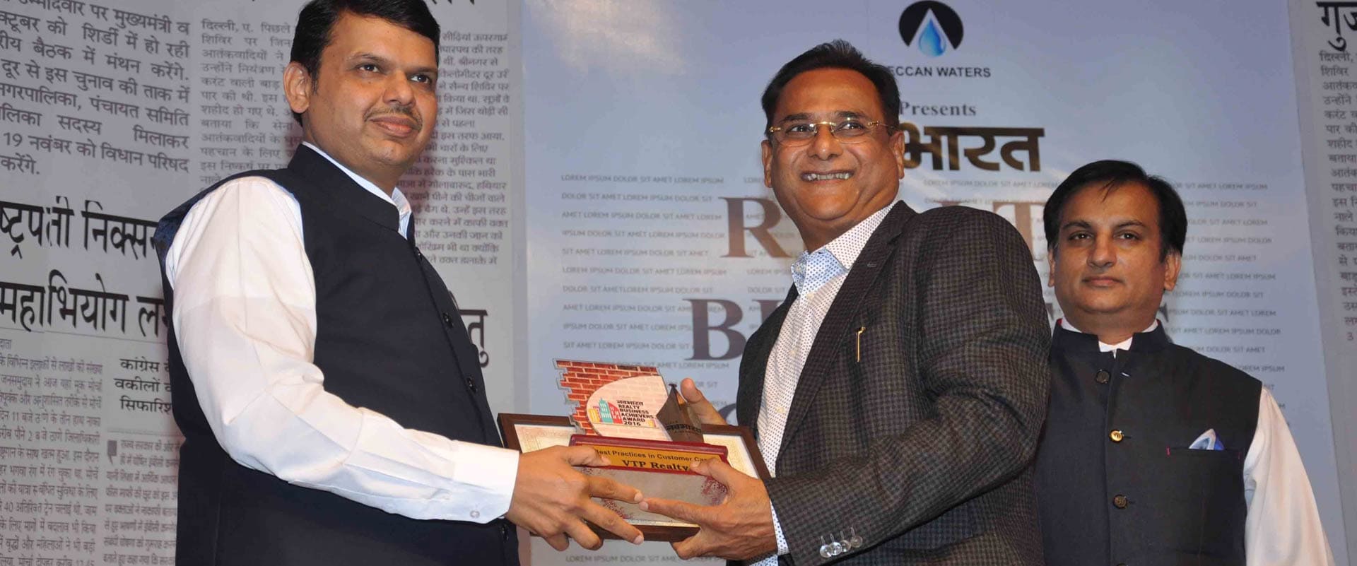 VTP Realty was awarded for the Navabharat Realty Business Achievers Awards 2016 “Best Practices in Customer Care” . The award was presented by the Hon’ble Chief Minister of Maharashtra