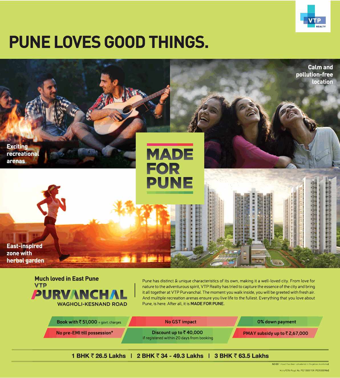 VTP Purvanchal is a residential project developed by the VTP Realty. The project is located in Wagholi, Kesnand Road, Pune. One of the best-selling projects of East Pune. And why wouldn't i