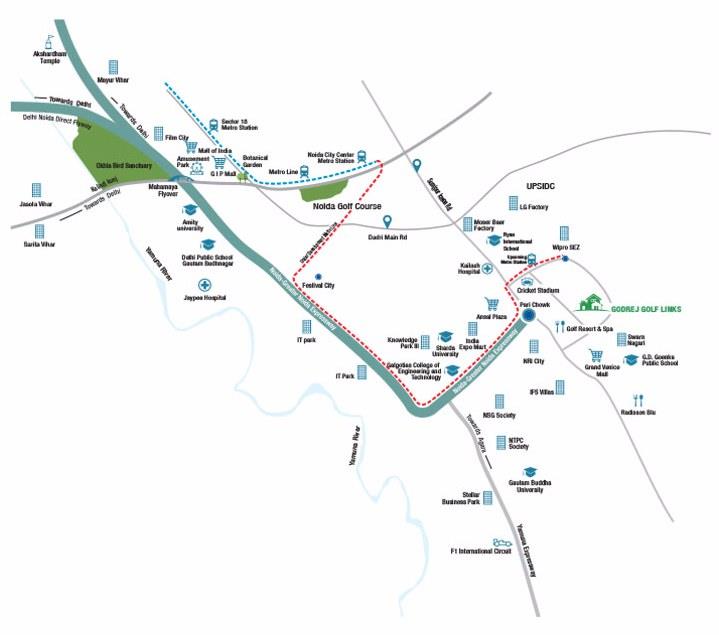 Godrej Golf Links is to come up on a 100 acre plot in Sector 27 Greater Noida, nearby Pari Chowk. Built on the theme of a ‘Golf Course’, this ambitious project comprises a mixture of Golf Villas in different sizes on 100, 125, 220 and 300 sq yards plots, in different configurations & budgets and presents them a lavish experience of living in the green neighborhood. One fascinating feature that will catch your attention is every villa is offered with private lawn & parking at this residential community