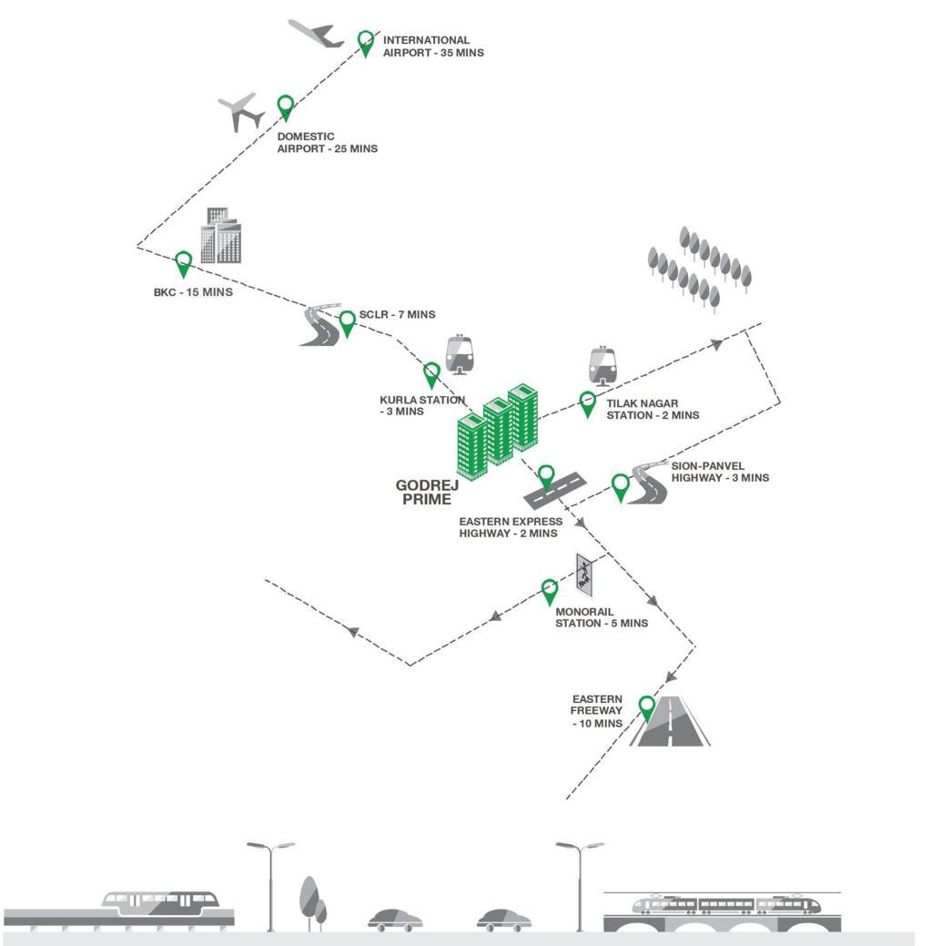 Godrej Prime is a residential project located at Chembur, Santacruz Chembur Link Road, Mumbai. It is a unique project which offers 2 and 3 BHK homes and completes the package with a number of useful features and amenities for all residents. These apartments are meticulously designed along with the rest of the project site. Mumbai is one of the hotspots for residential development and therefore has a lot of growth potential. Godrej Prime is backed by the Godrej Properties , one of the most trusted real estate developers in India, and is therefore a prime choice for a wholesome life experience.