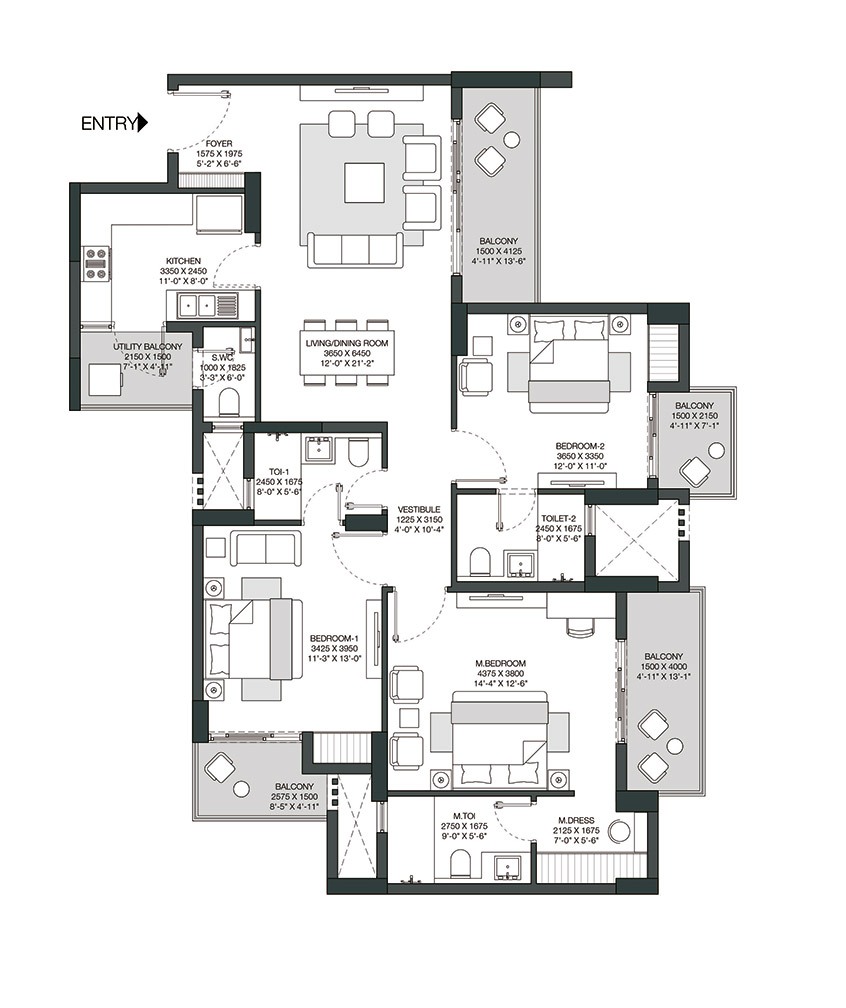 | Apartment | 3 BHK + Utility | 1636 Sq. Ft. | aspect_ratio |