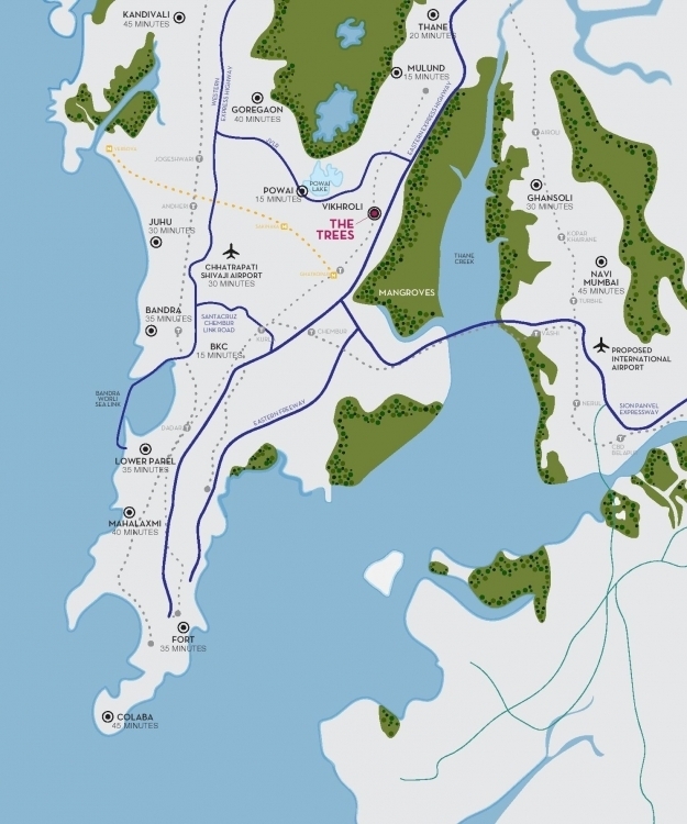 Godrej The Trees is a residential project located at Vikhroli East, Eastern Express Highway, Mumbai. It is a unique project which offers 1, 2 and 3 BHK homes and completes the package with a number of useful features and amenities for all residents. These apartments are meticulously designed along with the rest of the project site. Mumbai is one of the hotspots for residential development and therefore has a lot of growth potential. Godrej The Trees is backed by the Godrej Properties, one of the most trusted real estate developers in India, and is therefore a prime choice for a wholesome life experience.