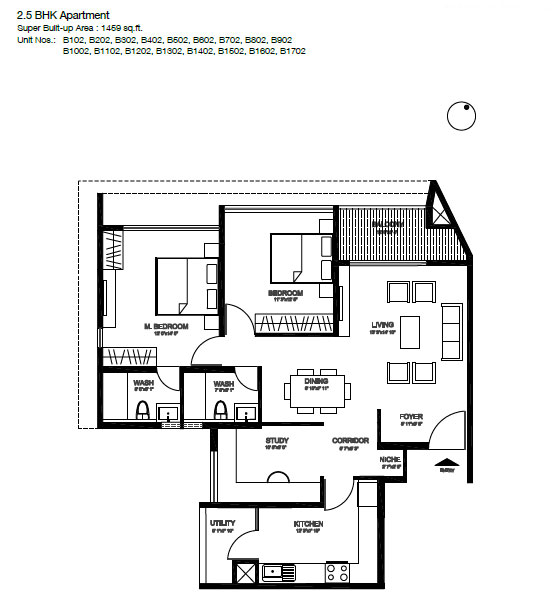 | Apartment | 2 BHK + Study + Utility | 1459 Sq. Ft. | 1459 Sq. Ft. | aspect_ratio |
