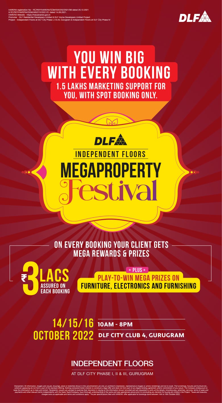 You Win Big With Every Booking Rs 1.5 Lakhs Marketing Support For You, With Spot Booking Only.  On Every Booking Your Client Gets Mega Rewards & Prizes Rs 3 Lac Assured on each Booking