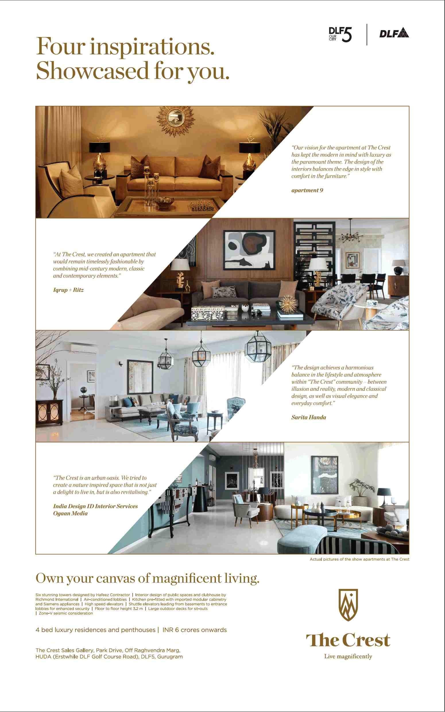There is no greater luxury than the opportunity to live in an urban sanctuary that hosts a selection of hospitality avenues. Come home to the masterpiece of The Crest that is meticulously managed by DLF, taki