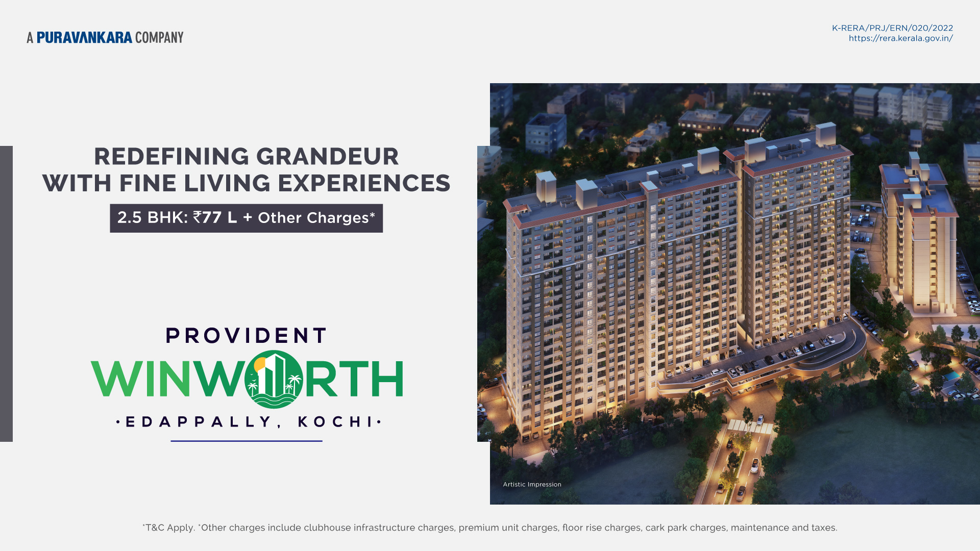 Book 2.5 BHK home Rs 77 Lac and other charges at Provident Winworth in Kochi
