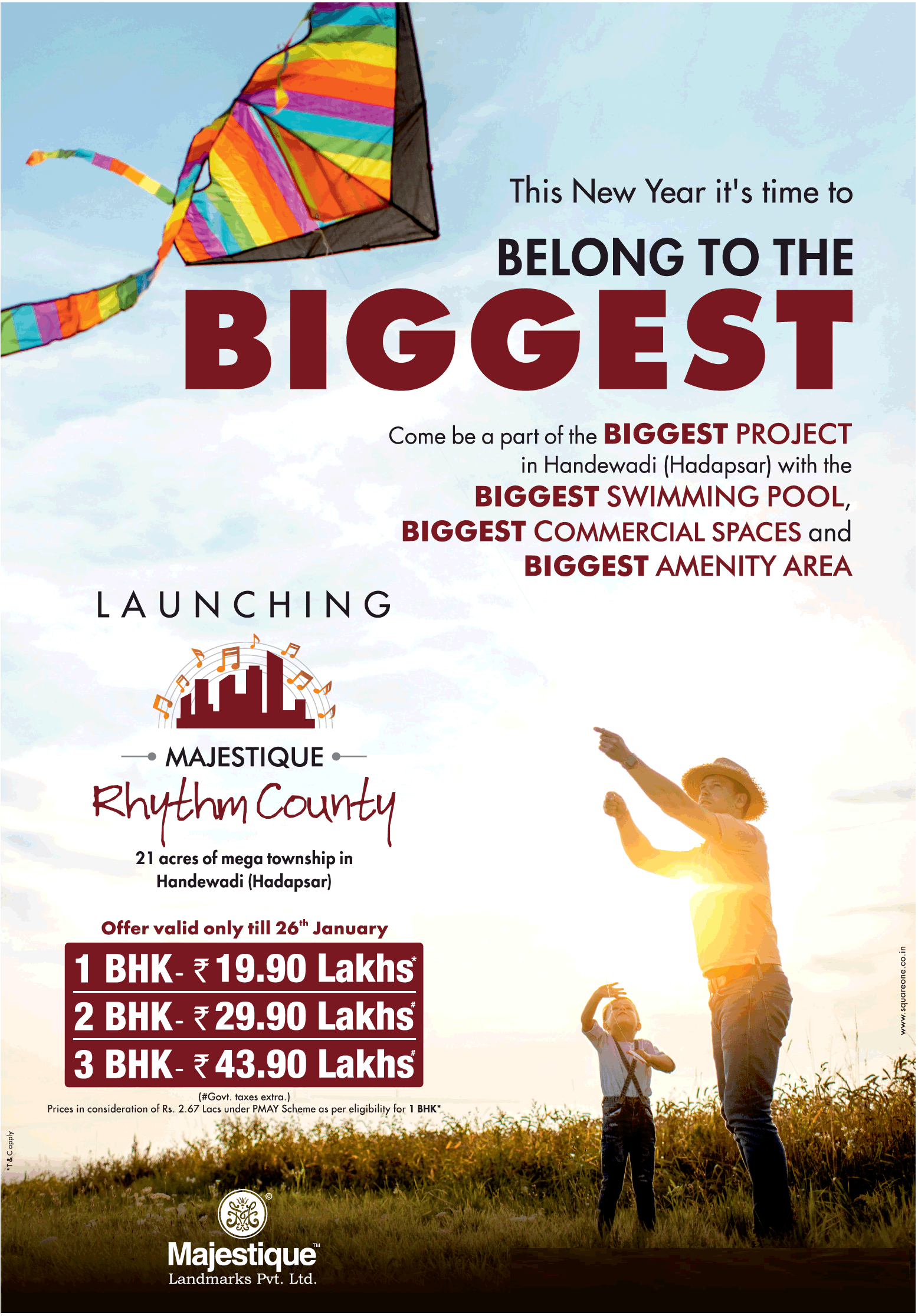 You've always dreamt big, so why settle for anything less! This New Year experience the Biggest Project in Handewadi (Hadapsar), spread over 21 acres, with a world of larger than life amenities featured on