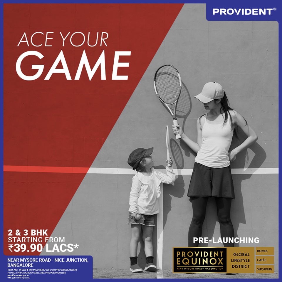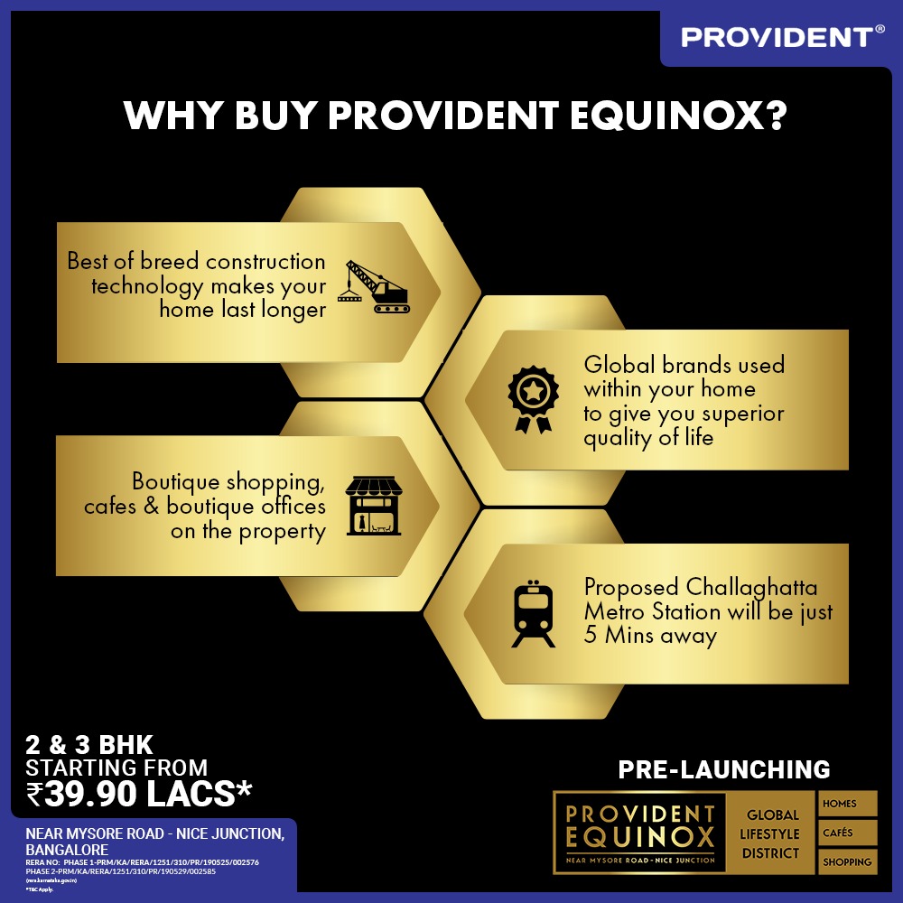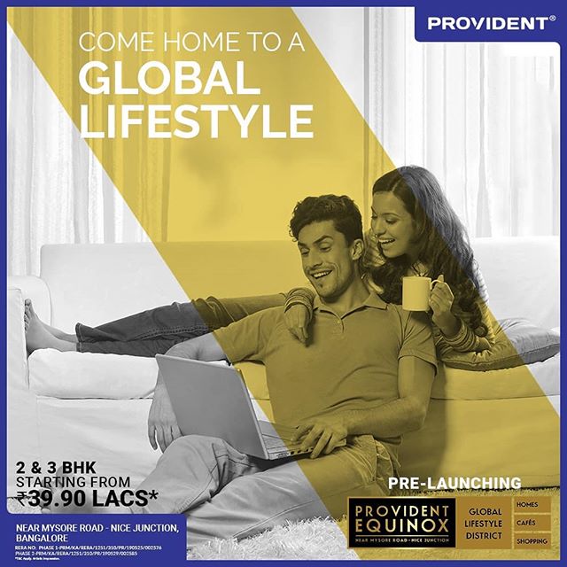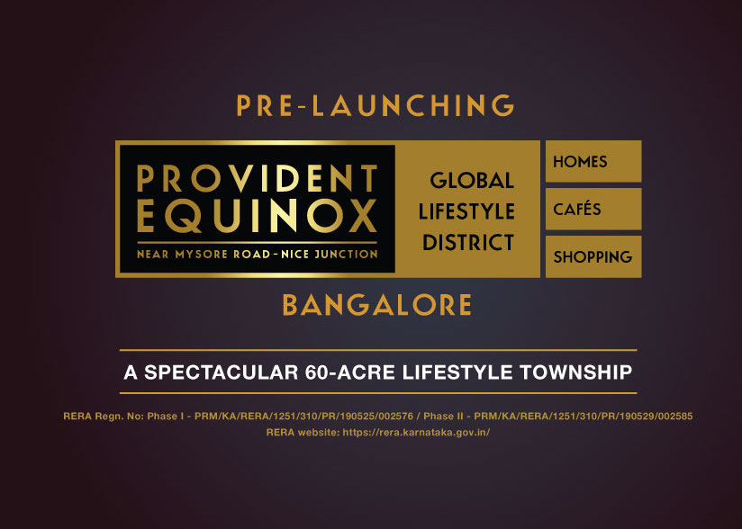 Pre launching Provident Equinox. Provident Equinox off Mysore Road. A spectacular 60-acre Lifestyle Township that’ll redefine the way you live, work and indulge in life. Aesthetically planned, sturdily built apartments with an