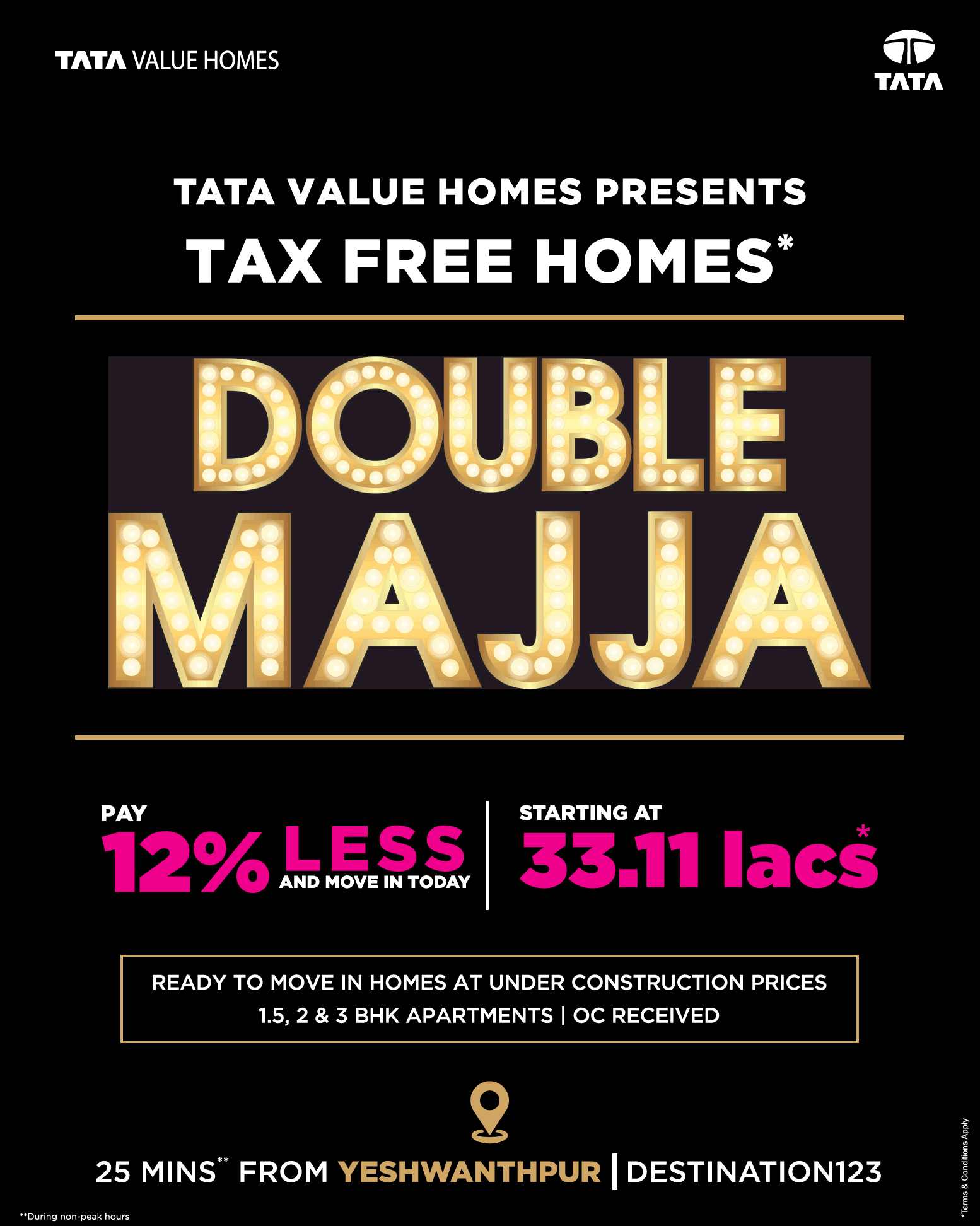 Last 3 days Diwali and Dhanteras Festival offer by Tata Valu Homes which is on date 3rd, 4th and 5th November 2018. Get assured gift voucher worth Rs. 1000 on walk-in.