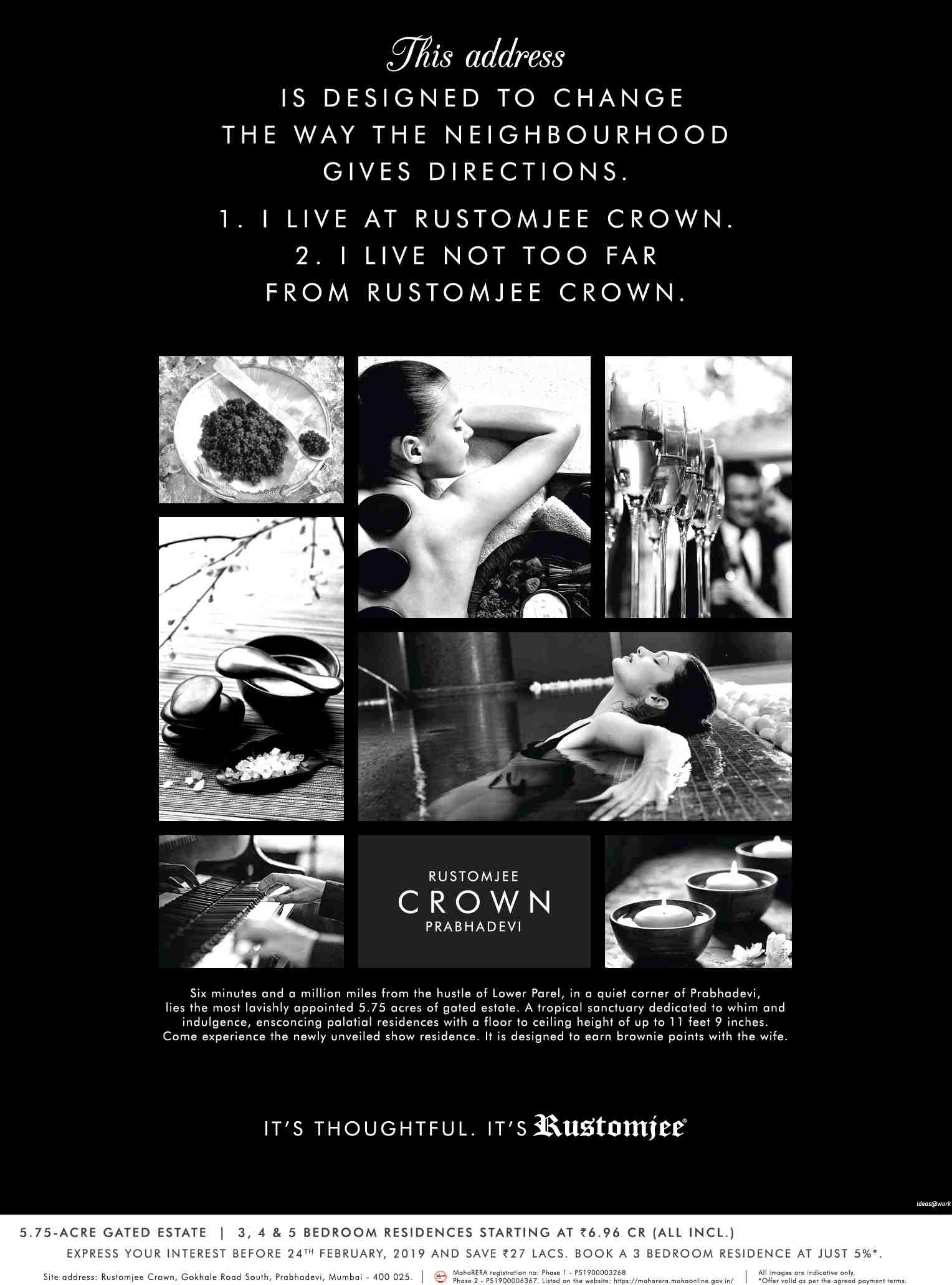 Rustomjee Crown is a premium gated estate and it offers 3, 4 & 5 Bed Residences with a plethora of amenities and excellent connectivity to city's major landmarks. Six minutes and a million miles fr
