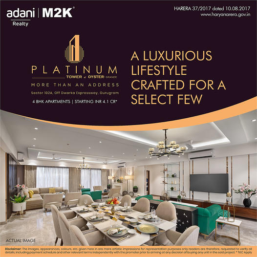 Adani Oyster Platinum Tower is an exclusive Project located in Sector 102, Dwarka Expressway and well connected by major road(s) like Dwarka Expressway, Pataudi Road. The total area in which Adani Oyster Plat