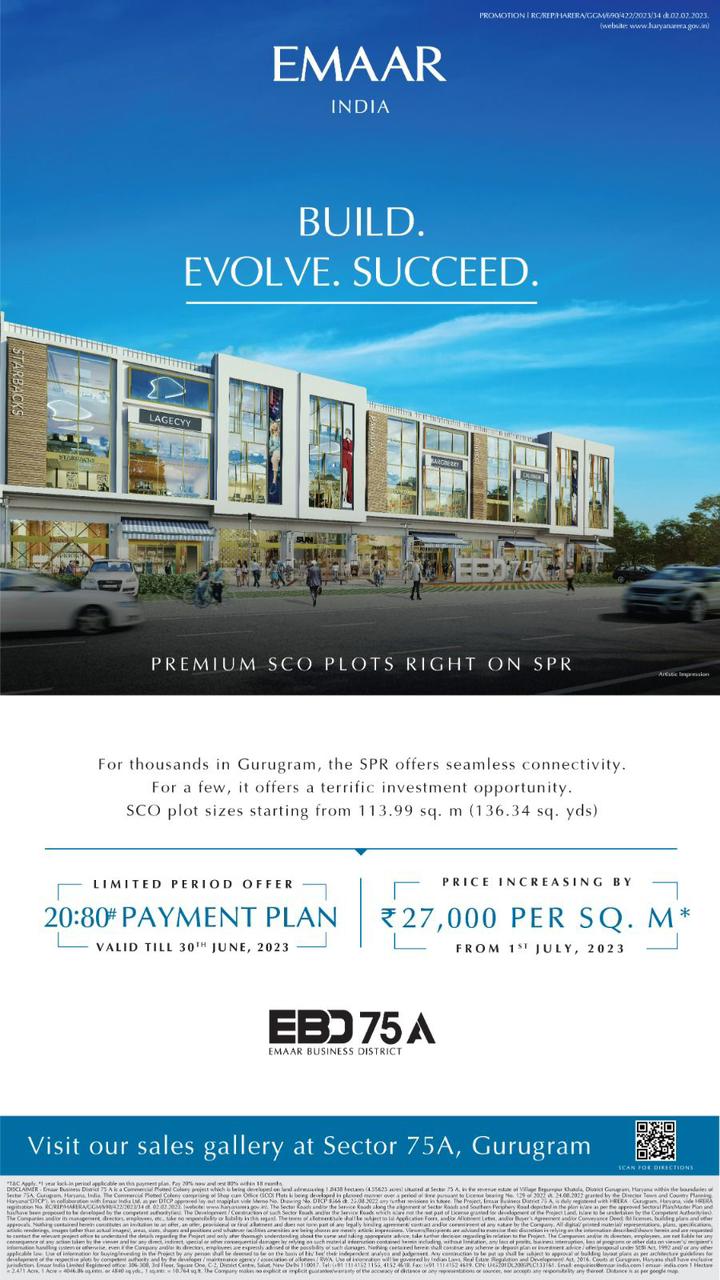 A premium shop-cum-office plot concept, EBD 75A is the latest addition to our success story of SCO developments in Gurugram. Positioned strategically on Southern Peripheral Road, which is termed as the new grow