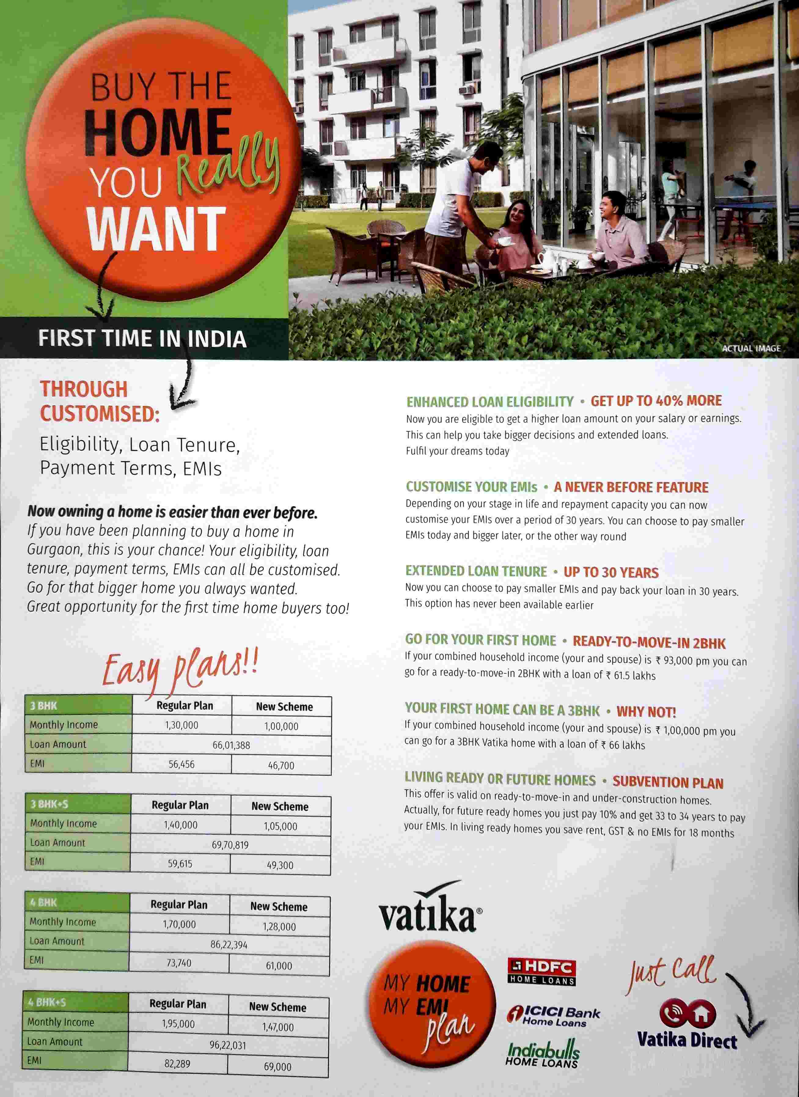 Now owning a home is easier than ever before with My home my EMI plan. If you have been planning to buy a home in Gurgaon, this is your chance. Through eligibility, loan tenure, payment terms, EMIs can all be customised. Go for that