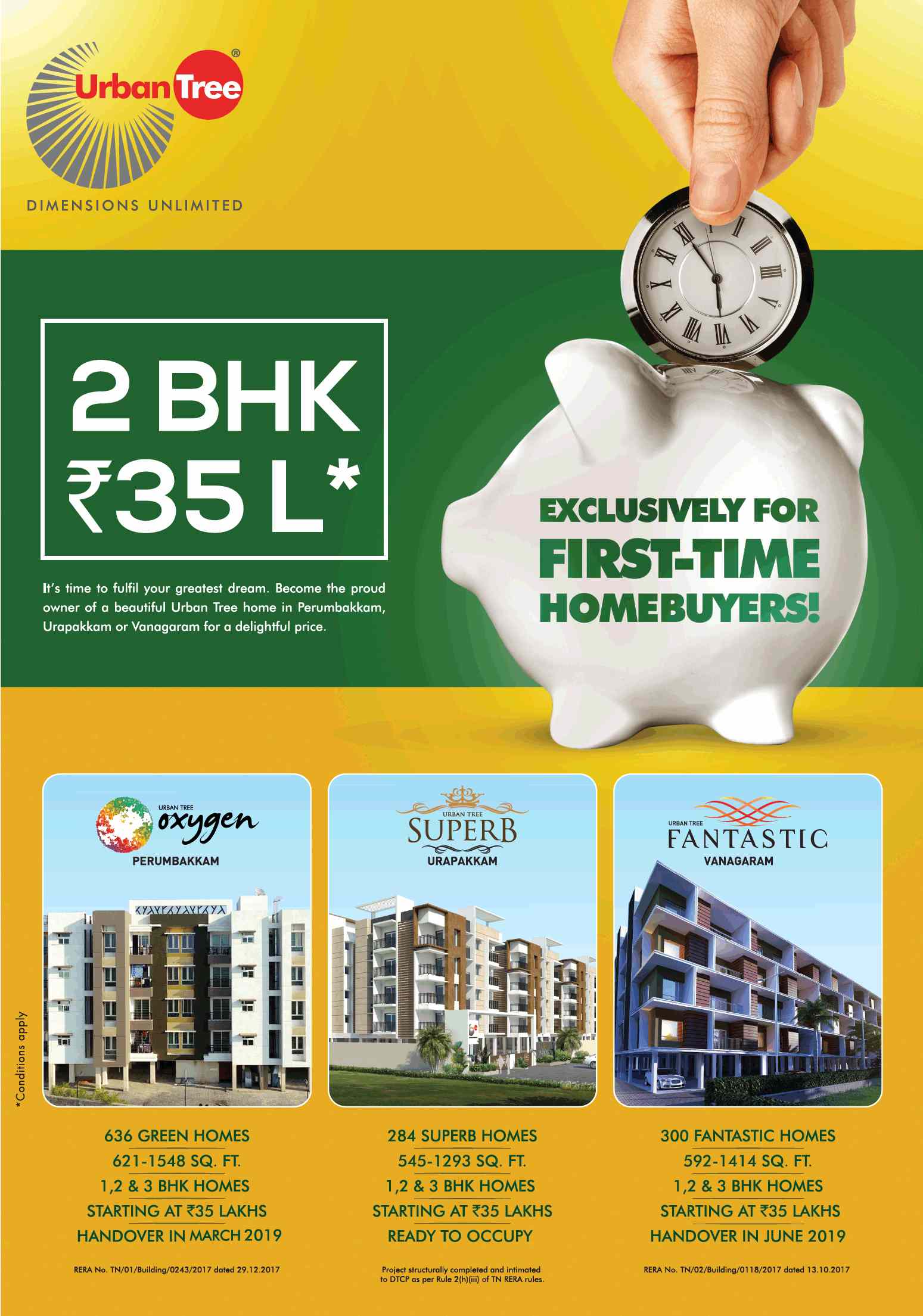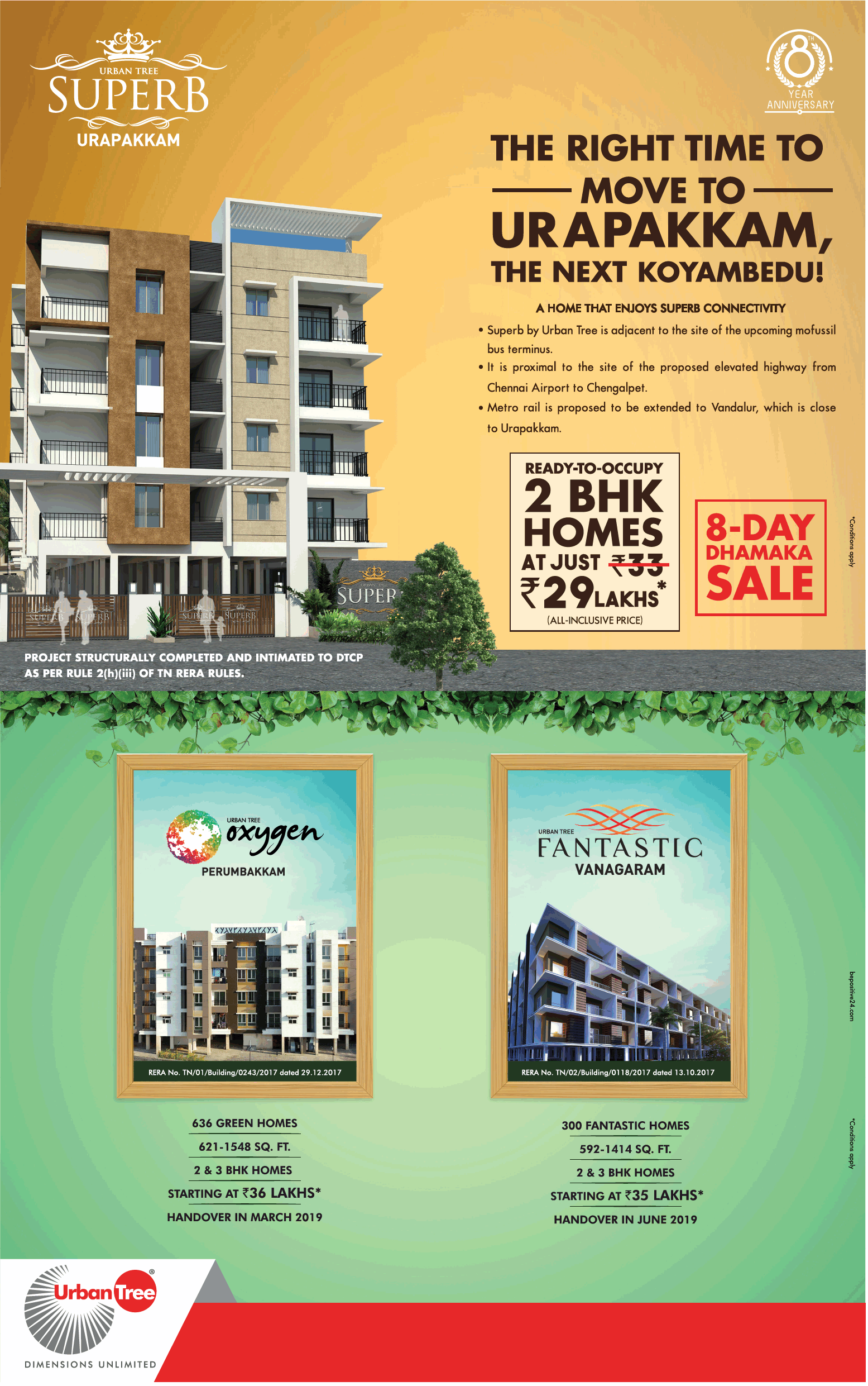 It's time to fulfil your greatest dream. Become the proud owner of a beautiful Urban Tree home in Perumbakkam, Urapakkam or Vanagaram for a delightful price. Exclusive for first-time homebuyers.